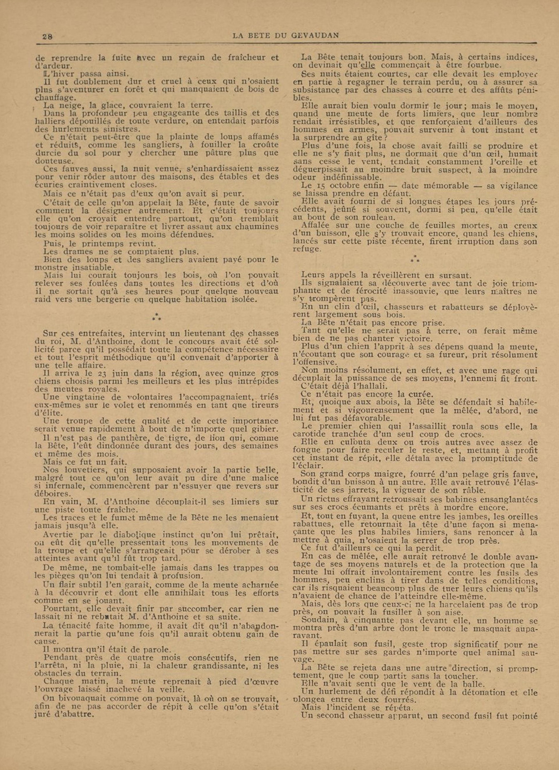 C’était de celle qu’on appelait la Bête, faute de savoir comment la désigner autrement. Et c’était toujours elle qu’on croyait entendre partout, qu’on tremblait toujours de voir reparaître et livrer assaut aux chaumines les moins solides ou les moins défendues.