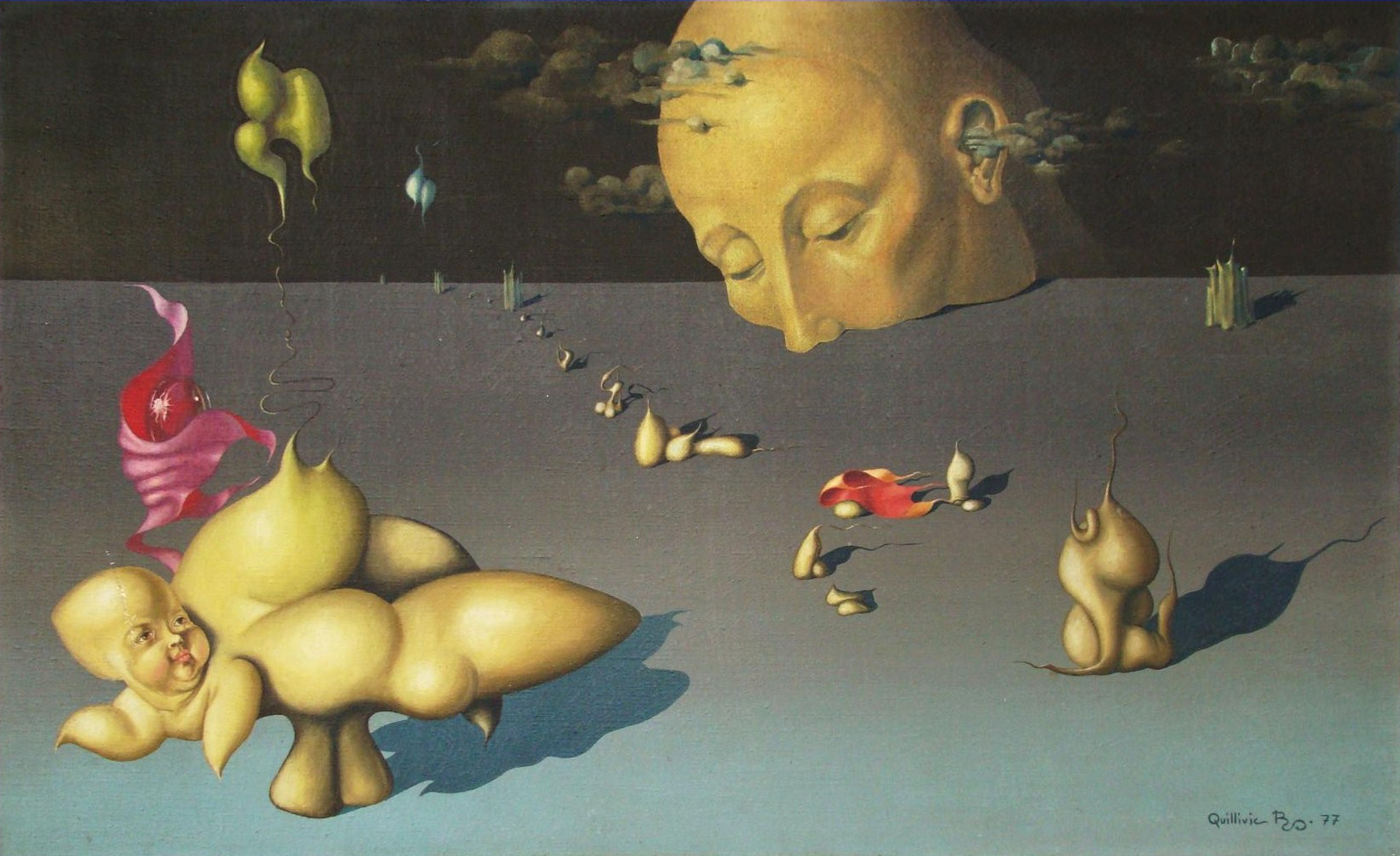 (Bernard Gervaise, in Gringoire, grand hebdomadaire social, politique, littéraire, seizième année, n° 752, vendredi 14 mai 1943 ; Raymond Louis Quillivic, « La Création du monde ou l’observateur » et « Télépathie horizontale, » huiles sur toile, 1977)