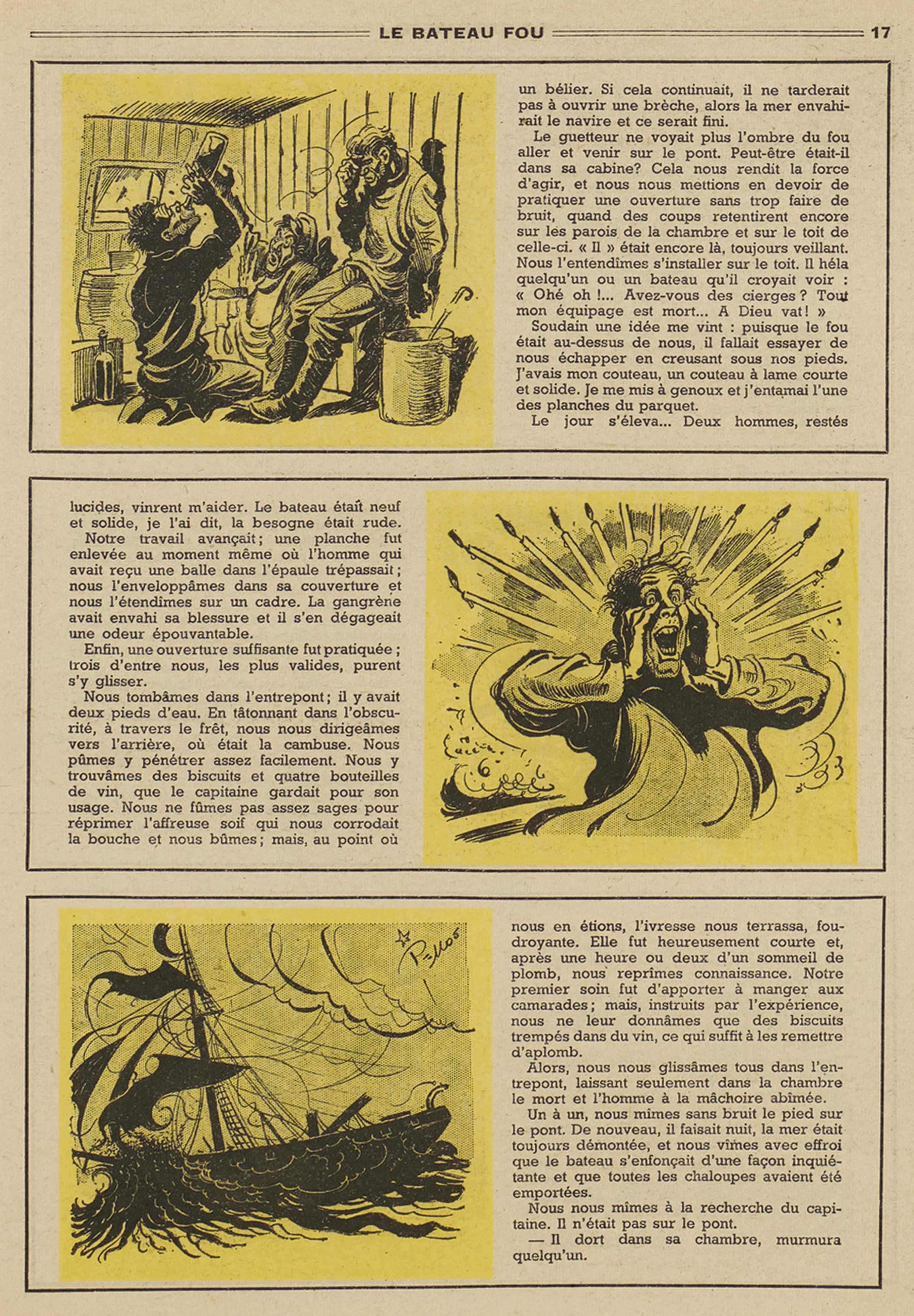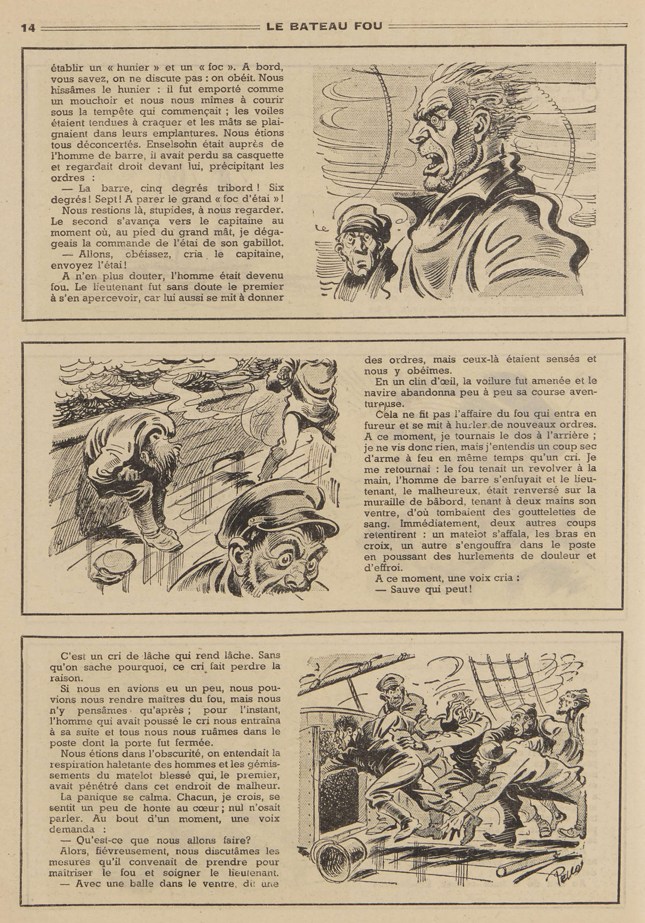 (Ernest-Maurice Laumann, illustrations de René Pellos, in Le Journal des Pieds Nickelés, n° 19, janvier 1950. Cette nouvelle est initialement parue dans Lecture pour tous, janvier 1922 ; elle a été reprise dans Lisez-moi Aventures, n° 48, 1er mai 1950)
