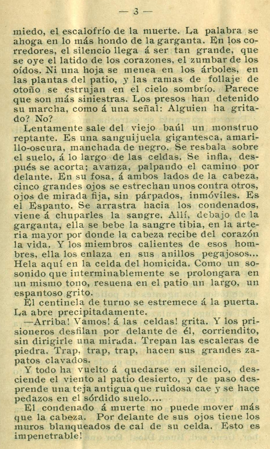 Donc, ce diable de revenant entra dans ma chambre et vint délibérément s’asseoir sur mon lit. Il tenait d’une main une misérable paire de castagnettes, dont l’origine était on ne peut plus mystérieuse, et de l’autre, le pan de son suaire taillé dans de la toile de sac. Il avait deux yeux, deux dents et deux narines, mais il ne gardait ouvert qu’un œil, ne se servait que d’une dent, et une seule narine était en action.
