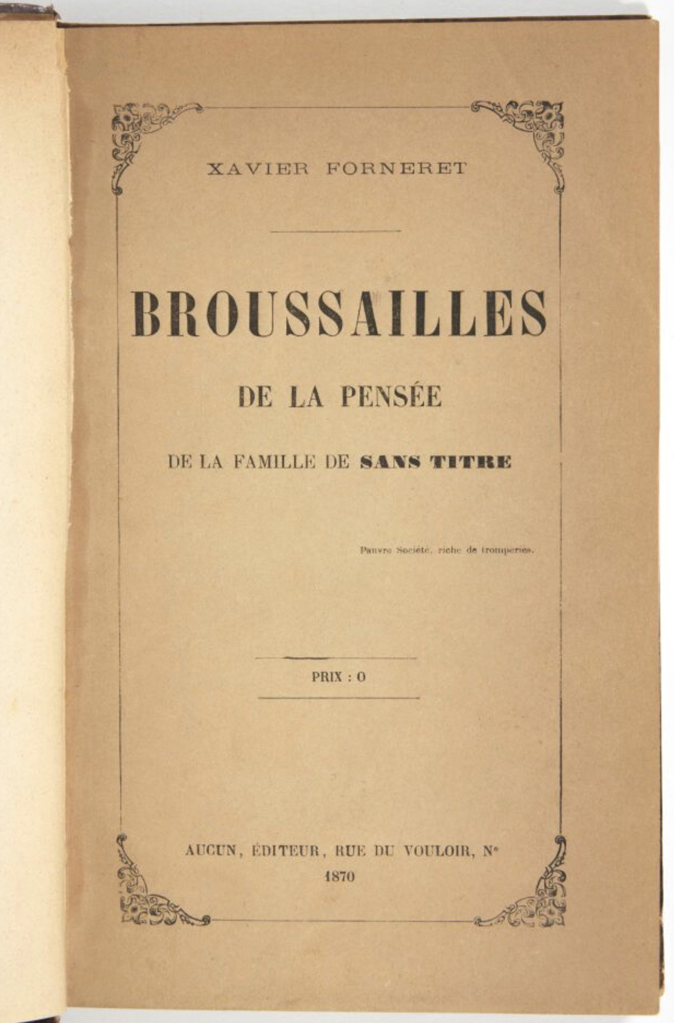 Il y a quelque temps déjà, nous avons découvert que quatre-vingts des aphorismes rassemblés dans les Broussailles de la pensée de Xavier Forneret avaient fait l’objet d’une publication préoriginale dans Le Nain jaune, entre février et avril 1868. Sauf erreur de notre part, cette référence est passée inaperçue, car nous n’en avons trouvé mention nulle part. Ce sont ces aphorismes que nous reproduisons aujourd’hui dans La Porte ouverte.