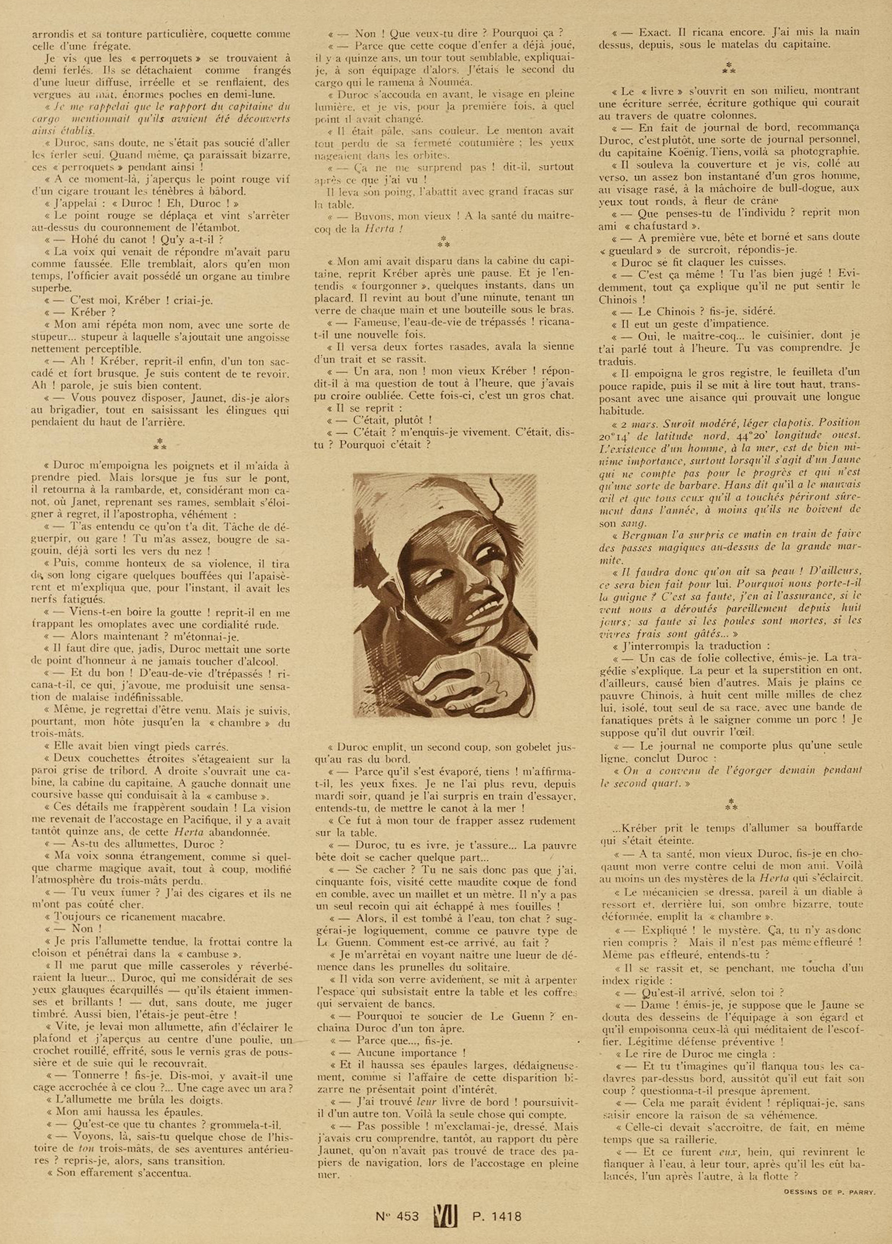 « Non ! Le mystère subsiste quand même… Comment expliquer qu’un marin, un vieux dur-à-cuire comme moi, ait pu naviguer plus d’une s’maine avec un Chinois, sans l’ savoir ?… C’est ça qui est mystérieux !…