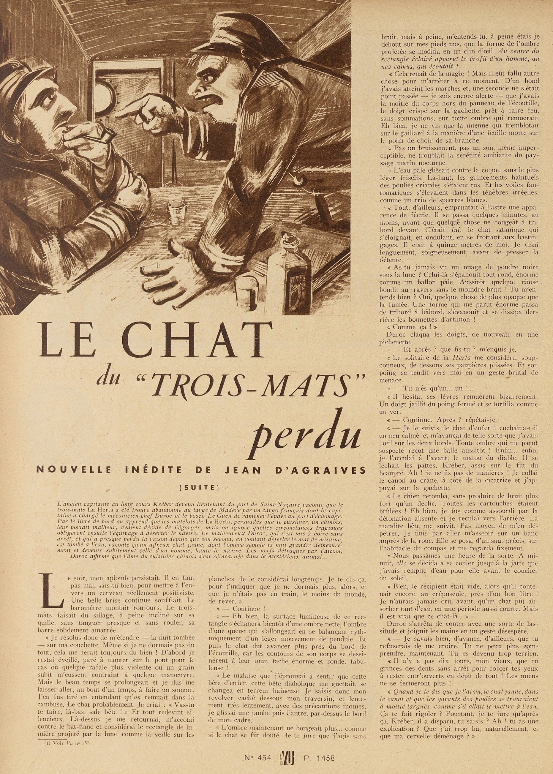 ☞ Présentée comme inédite, cette nouvelle a été reprise par Jean d’Agraives vingt ans plus tard, avec des modifications, sous le titre : « Le Chat du Trois-Mâts perdu. »