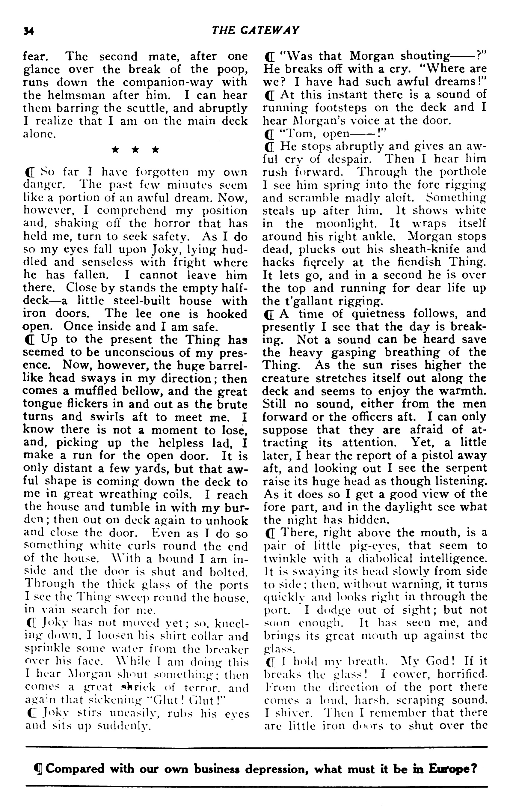 Que faire maintenant ? Hélène, avec une moue de dégoût, et luttant contre une nausée qui montait dans sa gorge, enroula le monstre dans la peau d’ours et descendit au jardin. Elle tenait devant elle l’ignoble paquet et se dirigeait dans l’obscurité aussi sûrement que si elle eût vu clair. Ce qu’il fallait surtout, c’était ne pas avoir de contact direct avec le monstre, ne pas penser à cette dépouille, se dire que c’était là du linge sale, et voilà tout. Mais c’est l’âme qui devait être contente !