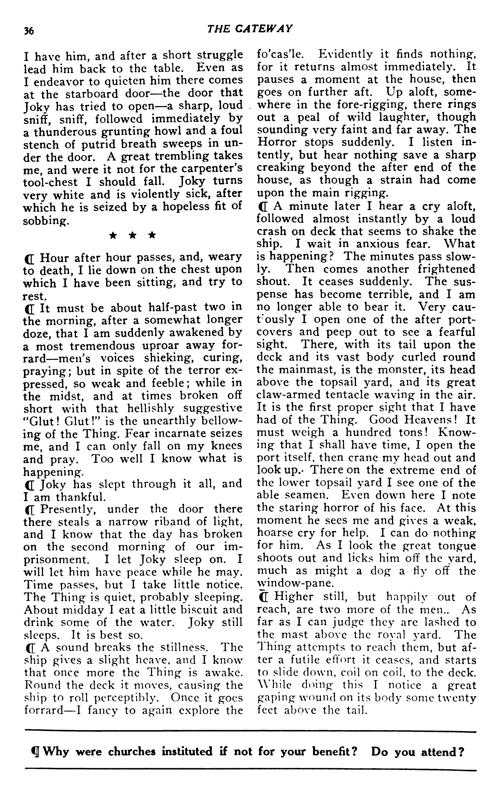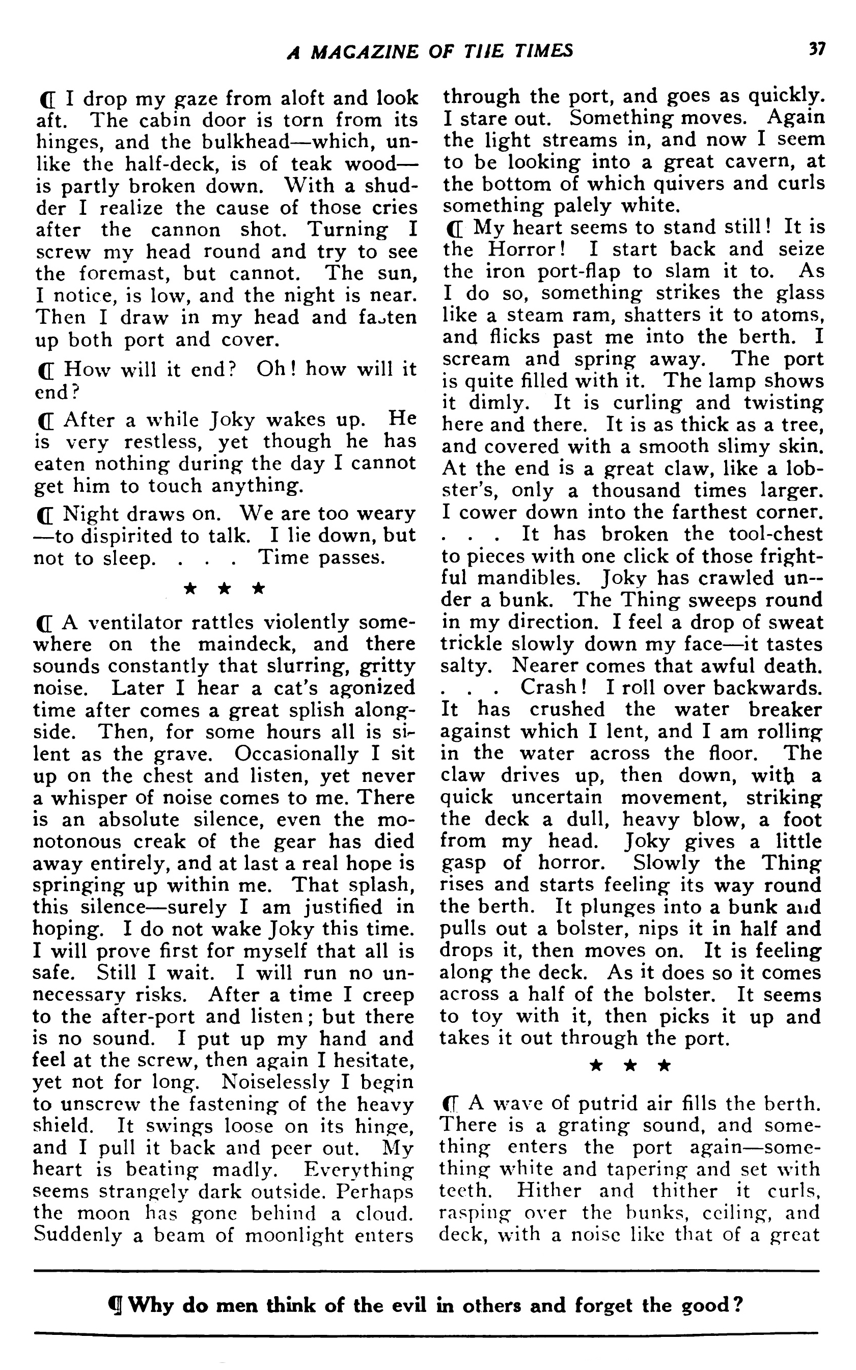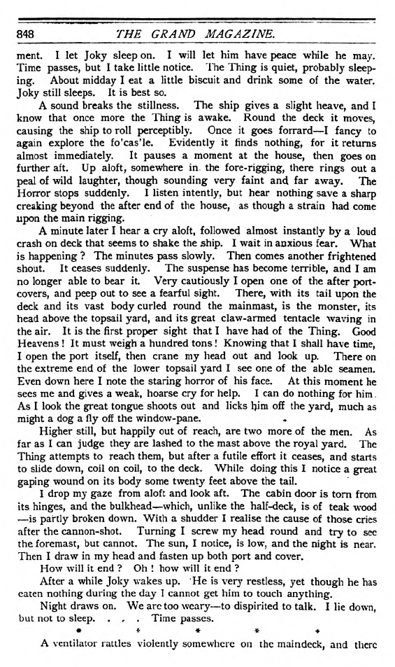 Elle détourna les yeux, mais il lui sembla que si elle cessait de fixer le monstre, celui-ci pourrait bondir sur elle. Alors, elle le considéra de nouveau et eut un soupir de soulagement. Le monstre ne la regardait plus. Il avait baissé la tête et paraissait réfléchir. À quoi pouvait-il bien réfléchir ? Elle haussa les épaules.