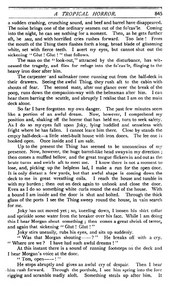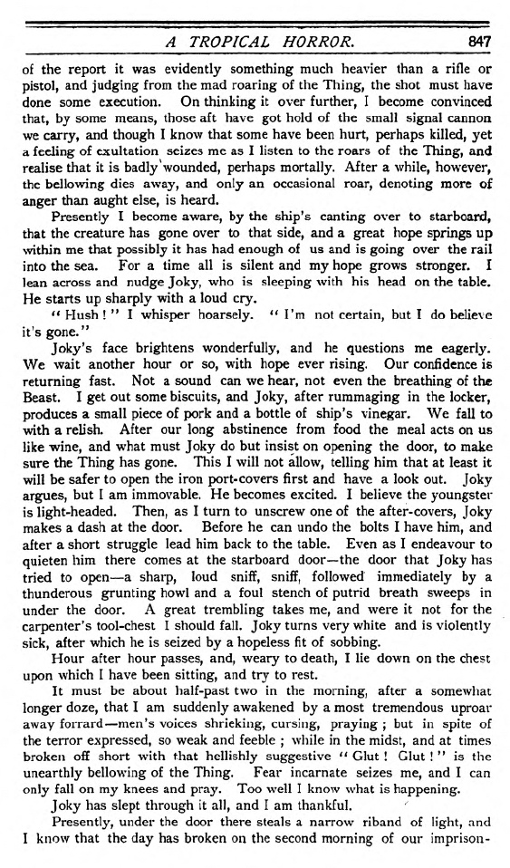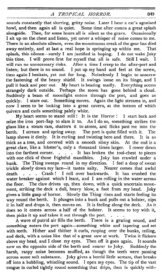 Le pauvre monstre, tout en dodelinant de la tête, s’était mis à chanter. C’est-à-dire qu’il poussait quelques grognements sourds et monotones. « Il a bu, pensa Hélène. Il est content… Il est saoul… » Elle le considéra un moment, fit un pas en avant, et deux en arrière. « Mais décidément, poursuivit-elle, je ne pourrai jamais m’approcher de lui. »
