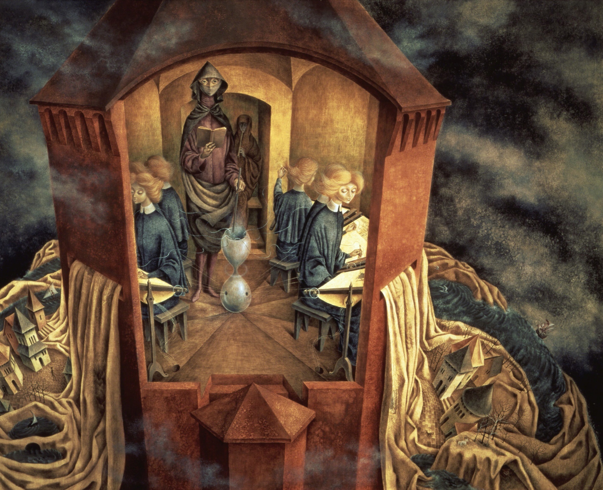 (William B. Seabrook, traduit par Jeanine Goldet, in Gringoire, le grand hebdomadaire parisien, politique, littéraire, cinquième année, n° 169, vendredi 29 janvier 1932 ; Remedios Varo, « Bordando el manto terrestre, » huile sur masonite, 1961)