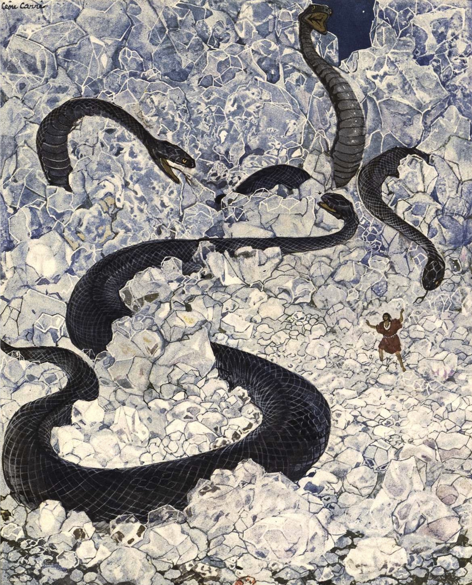 Les aventuriers restent pétrifiés d’horreur. Puis le plus brave, Frampton, lève son poing armé d’un revolver…