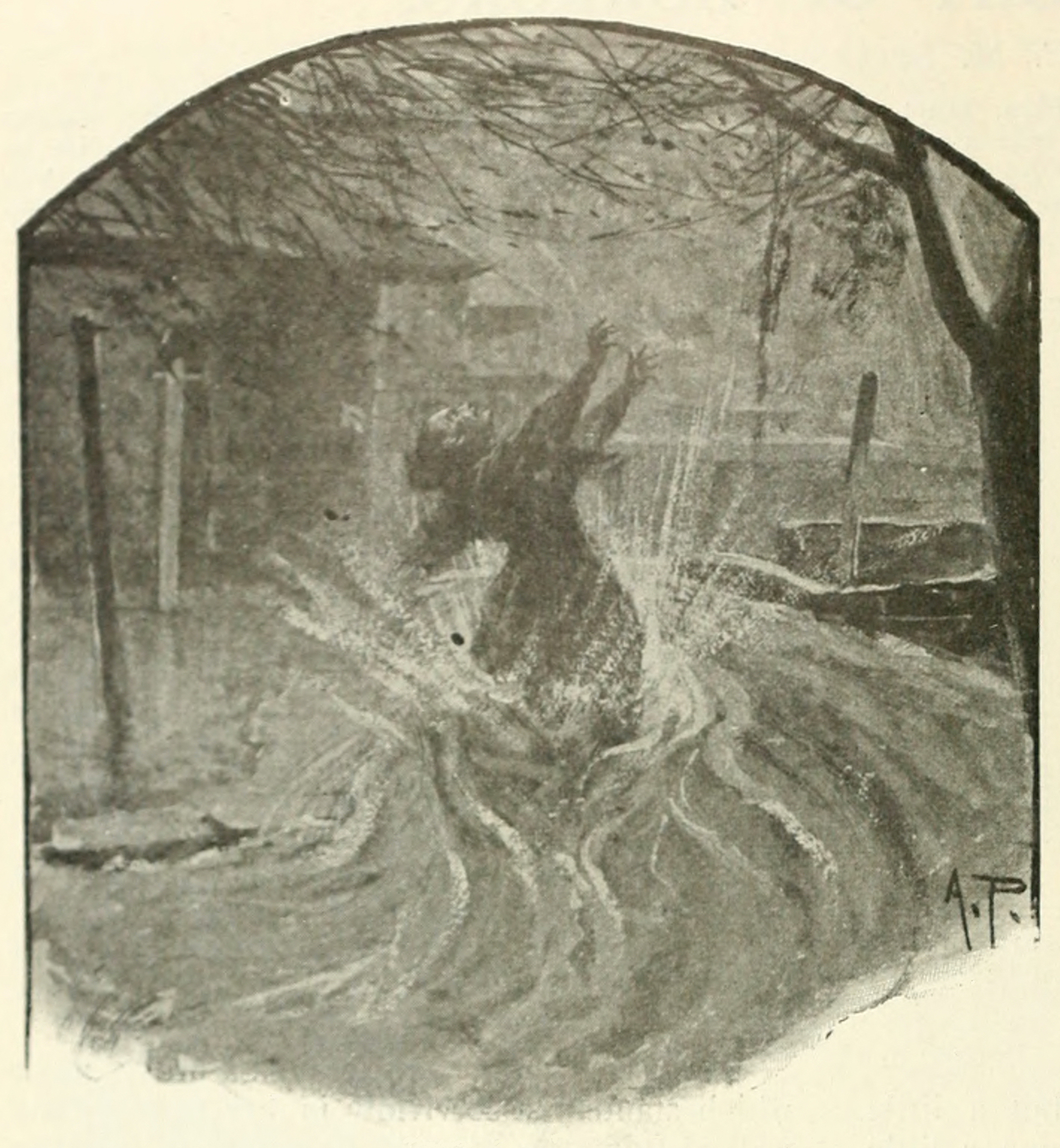 Or, il arriva qu’une vieille sorcière, qui demeurait dans le voisinage, s’en vint ramasser des herbes parmi les collines. Elle avait remarqué les cinq lis et les avait maudits, parce qu’ils étaient blancs. Elle s’aperçut que l’un d’entre eux avait été coupé, puis un autre, et encore un autre. Elle détestait ceux qui aiment les lis. Quand elle vit que le cinquième lis avait disparu, elle fut grandement étonnée et monta sur la hauteur pour voir où leurs tiges avaient été coupées. C’était une femme avisée, qui savait beaucoup de choses. Elle posa son doigt sur la tige coupée et dit : « Ceci n’a pas été tranché avec du fer » ; et, posant ses lèvres sur la tige coupée, elle sentit que cela avait été taillé avec des ciseaux d’or : car rien ne coupe aussi bien que l’or.