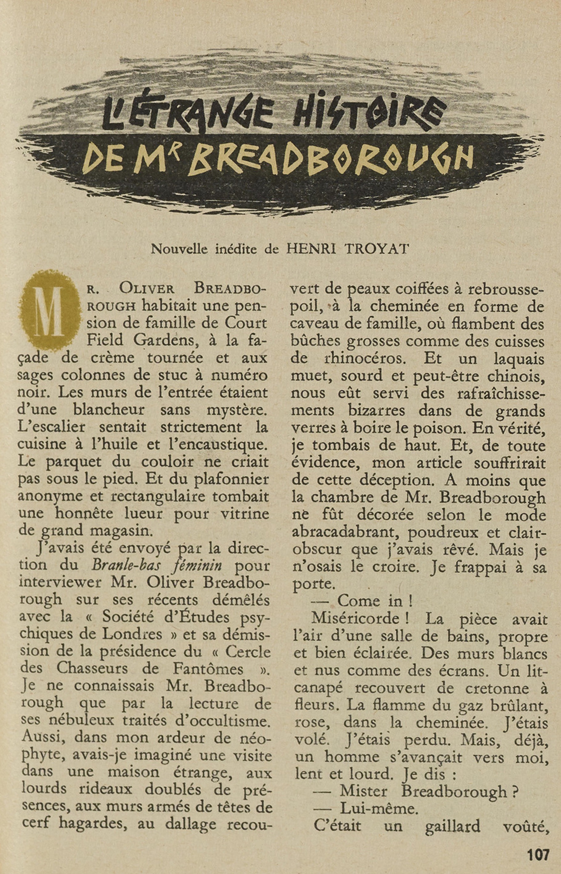 (Henri Troyat, in Constellation, le monde vu en français, deuxième année, n° 9, janvier 1949 ; cette nouvelle est initialement parue dans le Supplément littéraire du Figaro, cent-douzième année, n° 219, samedi 7 août 1937 ; elle a été reprise en volume dans le recueil La Fosse commune, Paris : Plon, 1939)