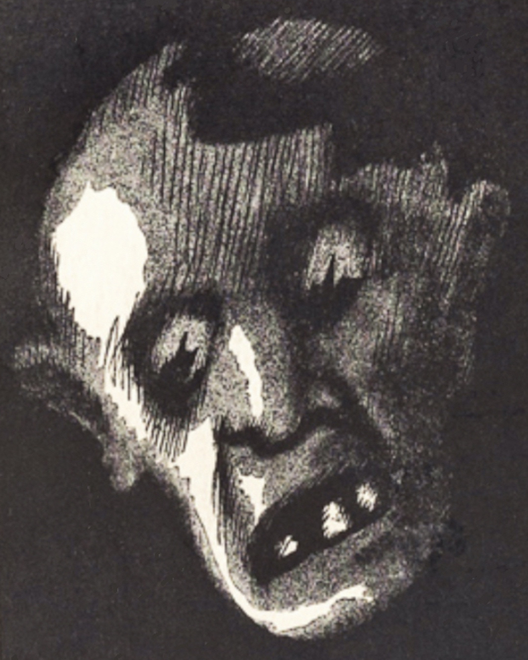 Il bondit, comme frappé d’un coup de fusil. Que voyait-il devant lui ? Un être nu, poilu et noir, avec de longs cheveux, ricanant d’un rire qui n’avait rien d’humain, et dont les yeux infernaux brillaient comme des tisons ardents. Le malheureux matelot poussa un hurlement de chat qu’on écorche, et s’affaissa convulsé sur le pont.