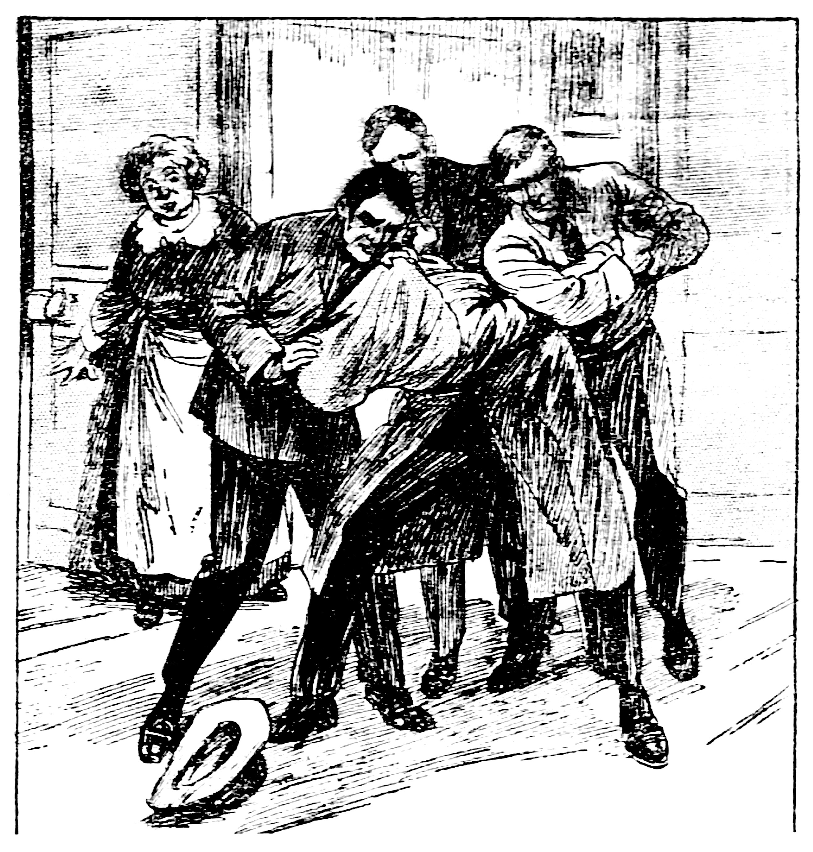 Ils partirent. Le chemin était long et difficile. Enfin, ils arrivèrent. Sur la petite place, le musée semblait abandonné. Le mauvais temps, qui retenait chez eux les curieux, mettait en fuite le propriétaire. Ils le découvrirent tout de même, réfugié dans la boutique d’un marchand de vins. Ce fut Edmond Souturier qui lui exposa le but de leur visite. Tout d’abord, le forain se défia : il flairait là-dessous une histoire de cambrioleur ; mais cinq beaux louis qui sonnèrent dans sa main firent tomber sa dernière objection. « C’est convenu, fit-il ; j’vas conduire monsieur. » Les trois jeunes gens accompagnèrent jusqu’à l’entrée leur camarade, puis ils lui souhaitèrent bonne nuit. Jacques et Louis hélèrent un fiacre pour regagner leur maison.