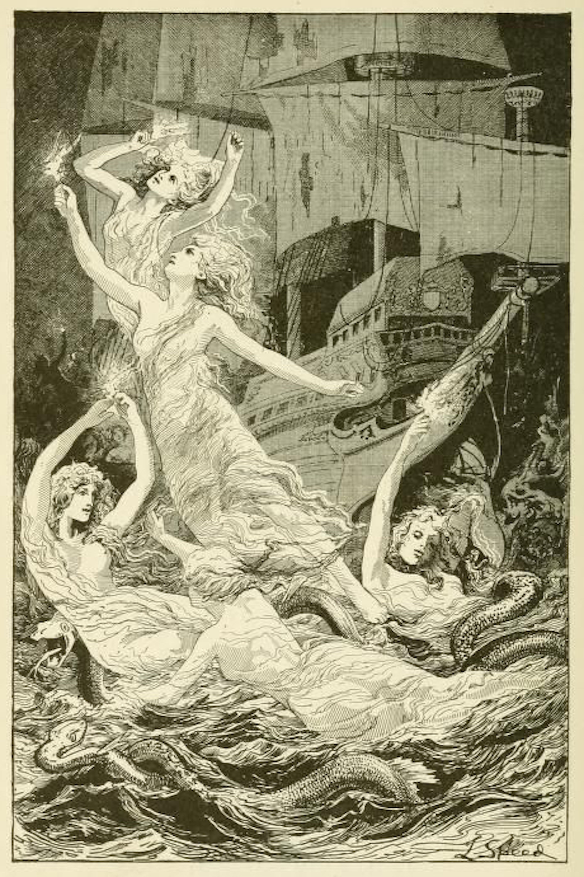 – Ne croyez-vous pas, docteur, qu’il a véritablement rencontré les sirènes ? Ce qu’il disait était tellement lucide. Ne peut-on imaginer qu’il est tombé à quelque distance d’une île inconnue, dont les femmes l’auraient recueilli et soigné ? La fièvre, sa blessure auraient paré ces indigènes de grâces inconnues et pisciformes. Et puis, après tout, elles existent peut-être, les sirènes…