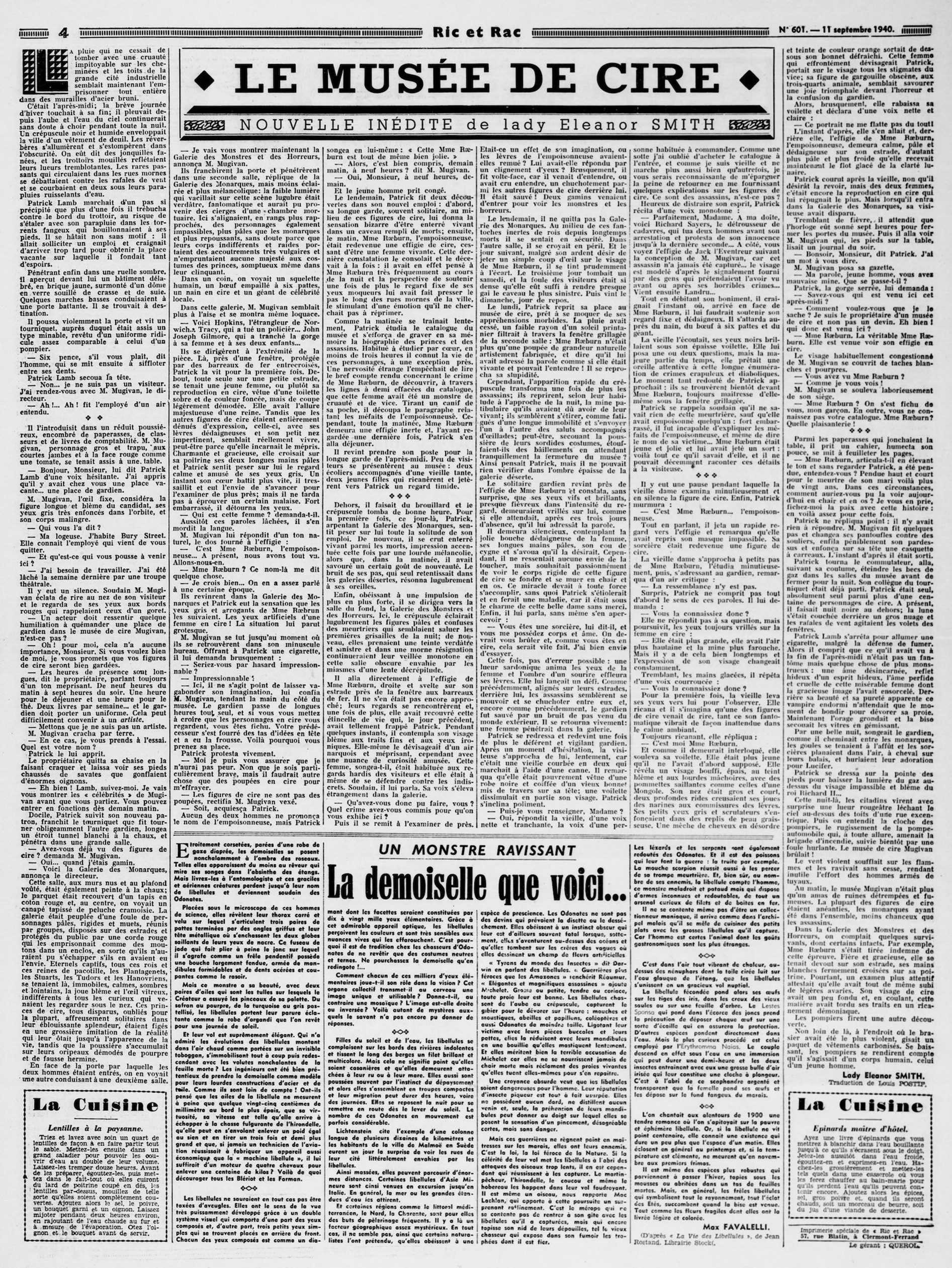 (Eleanor Smith, traduit par Louis Postif, in Ric et Rac, grand hebdomadaire pour tous, douzième année, n° 601, mercredi 11 septembre 1940. Pour une meilleure lisibilité, n’hésitez pas à cliquer sur l’image pour l’agrandir)