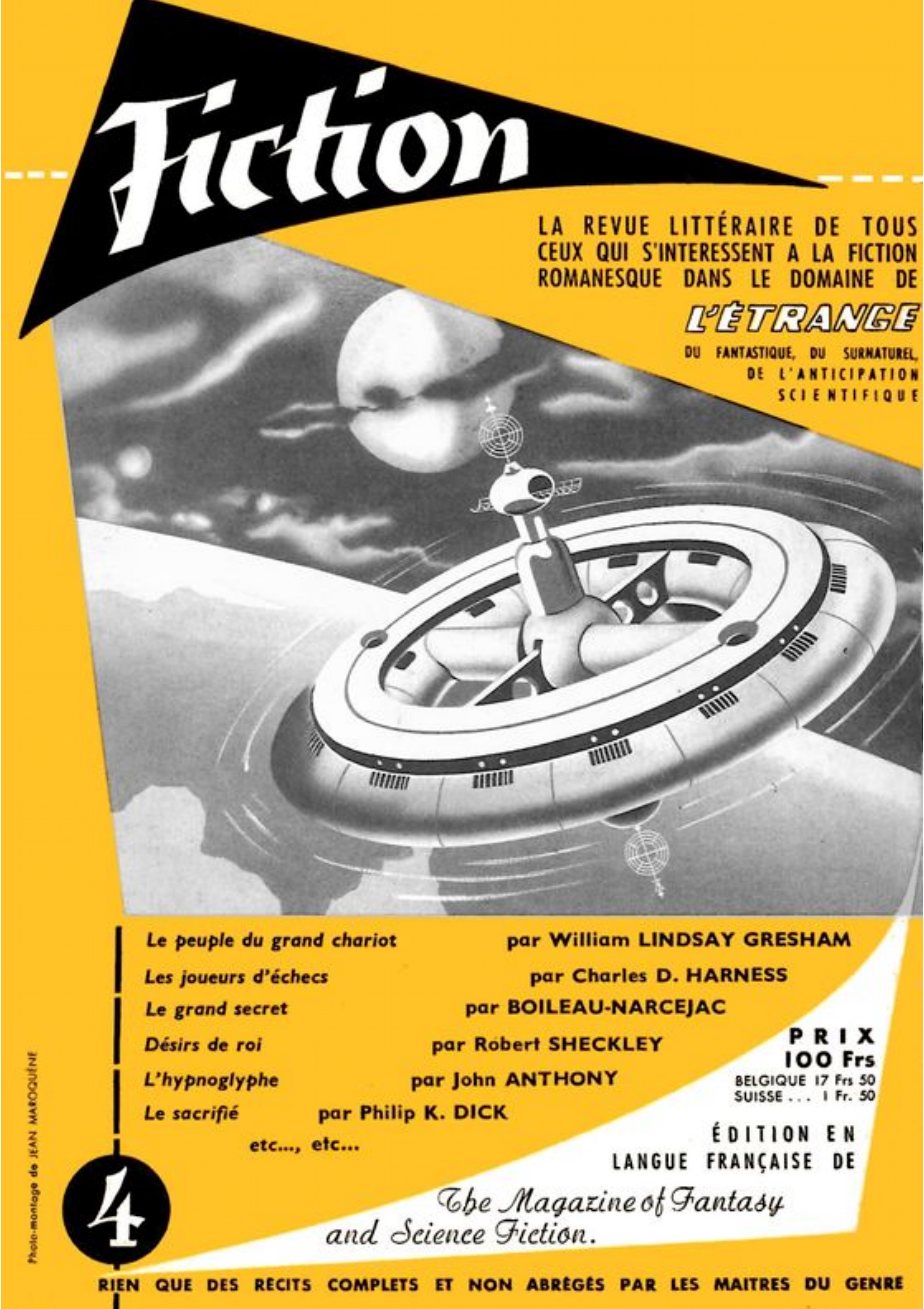 En France, la science-fiction commence la conquête de son public. C’est Raymond Queneau qui en a été le grand importateur. Une revue, qui s’intitule « Fiction » et qui est une filiale du « Mystère-Magazine » d’Ellery Queen, paraît chaque mois et donne des nouvelles traduites de l’américain. Une autre qui s’appelle « Galaxie, » qui est une traduction de « Galaxy Science Fiction » de New York, est apparue sur le marché au début de l’année. Une librairie, enfin, située rue des Beaux-Arts et dont nos lecteurs ont été informés de l’existence lorsqu’elle fut ouverte à ce genre par une exposition consacrée aux ouvrages parus et aux robots qui justifiaient ces ouvrages, fonctionne en permanence à l’enseigne de « La Balance. »