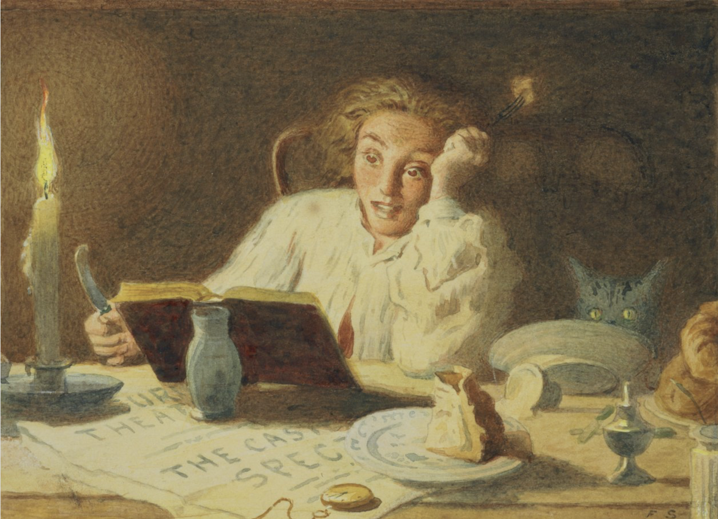 (Émile Chardome, in La Revue belge, troisième année, n° 4, 15 novembre 1926. Aquarelle de Frederick Smallfield, « The Ghost Story, » sd ; Robert William Buss, « The Ghost Story, » d’après une gravure Robert Graves, c. 1874)