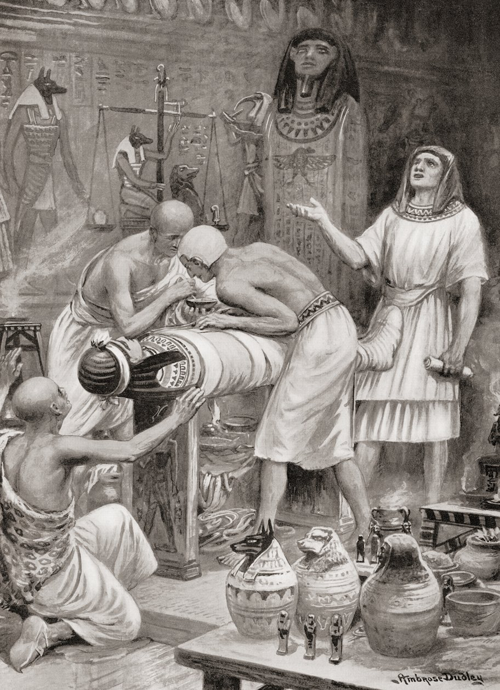 À mesure que le siècle avance, le Spectre envahit davantage les esprits et les livres. Johnson et quelques philologues contestent l’authenticité des chants attribués à Ossian par Macpherson, mais le grand public les dévore. Leur poésie est funèbre autant qu’élevée. Formes nébuleuses, les rois, les bardes, les vierges, montent lentement du fond des palais écroulés ou des tombes, pour se mêler aux vivants, leur apporter un conseil, un reproche ou une prière. Et les vivants eux-mêmes ont le flottement incertain des fantômes. Les silhouettes des guerriers ne se détachent pas, sculpturales, d’un immense pan d’azur, comme les corps en marbre blanc des héros homériques. Elles transparaissent à peine dans l’amoncellement des nues. Et ce sont les ombres irritées des morts, non les Olympiens éclatant de lumière, qui versent en eux la frénésie du combat.