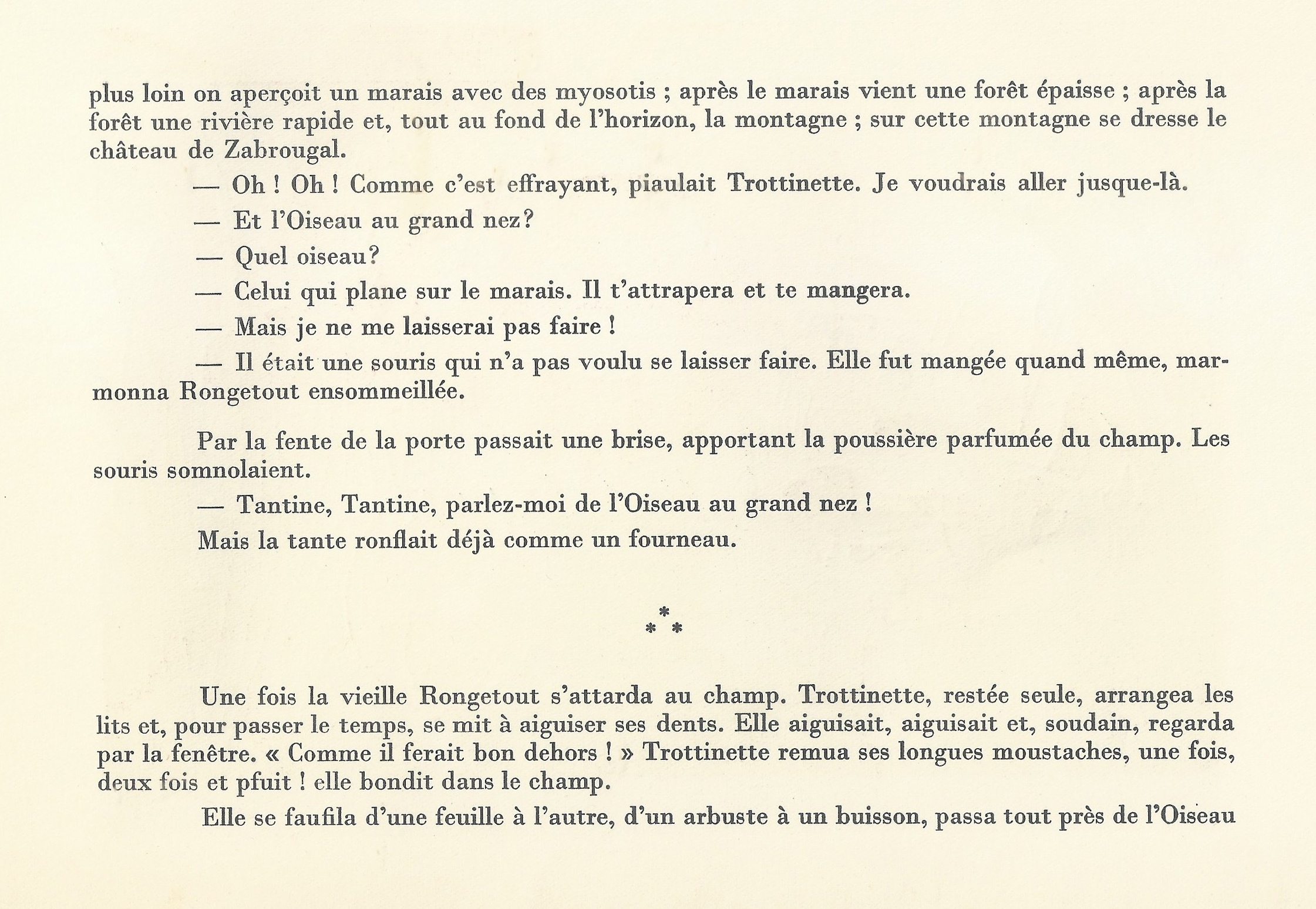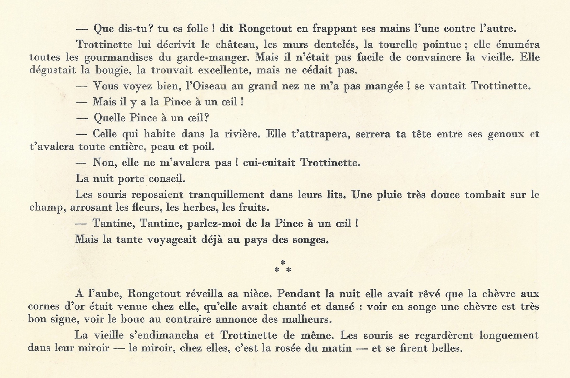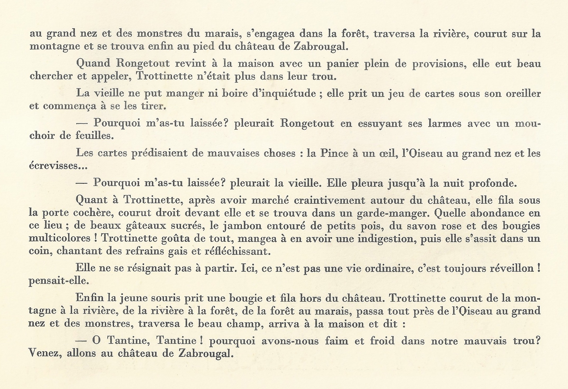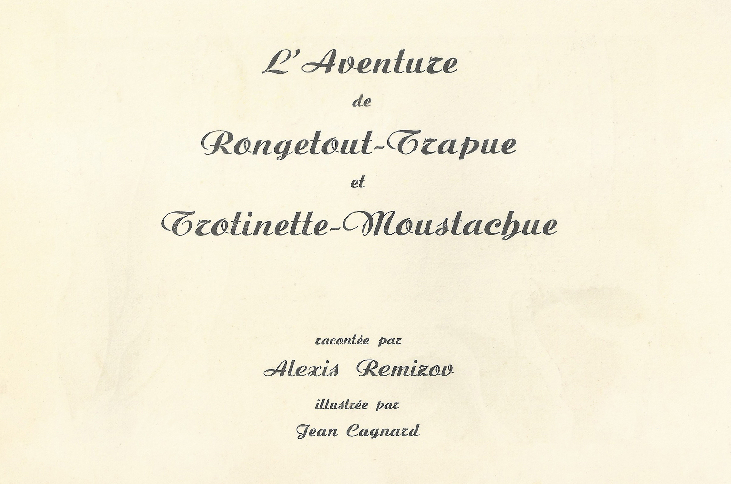 (L’Aventure de Rongetout-Trapue et Trotinette-Moustachue [sic], racontée par Alexis Remizov, illustrée par Jean Cagnard, Paris : Imprimerie Lecram-Servant [Éditions du Scorpion], 1946)