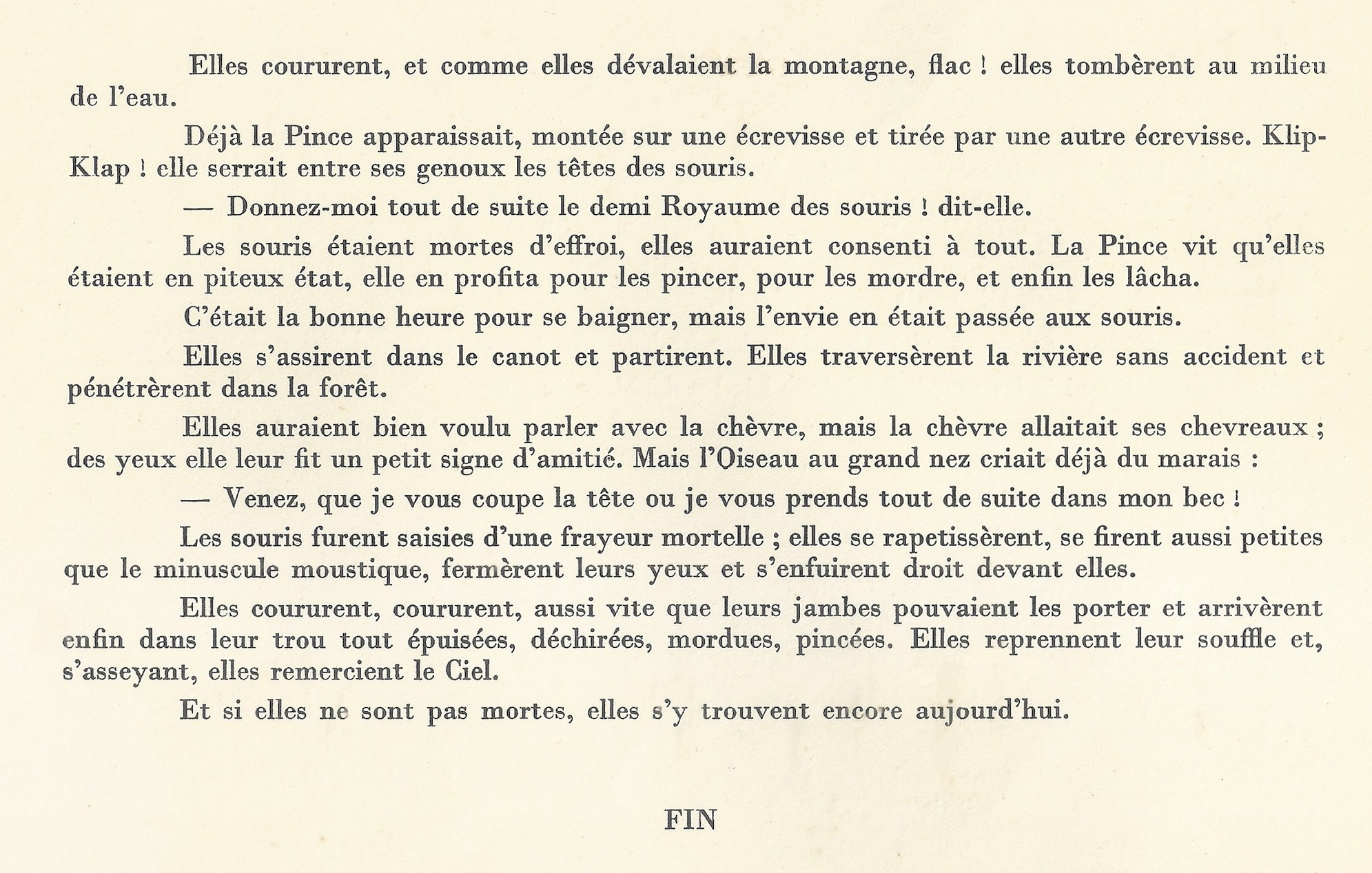 Une heure passa, une deuxième heure, une dixième heure : les souris restaient muettes d’épouvante.