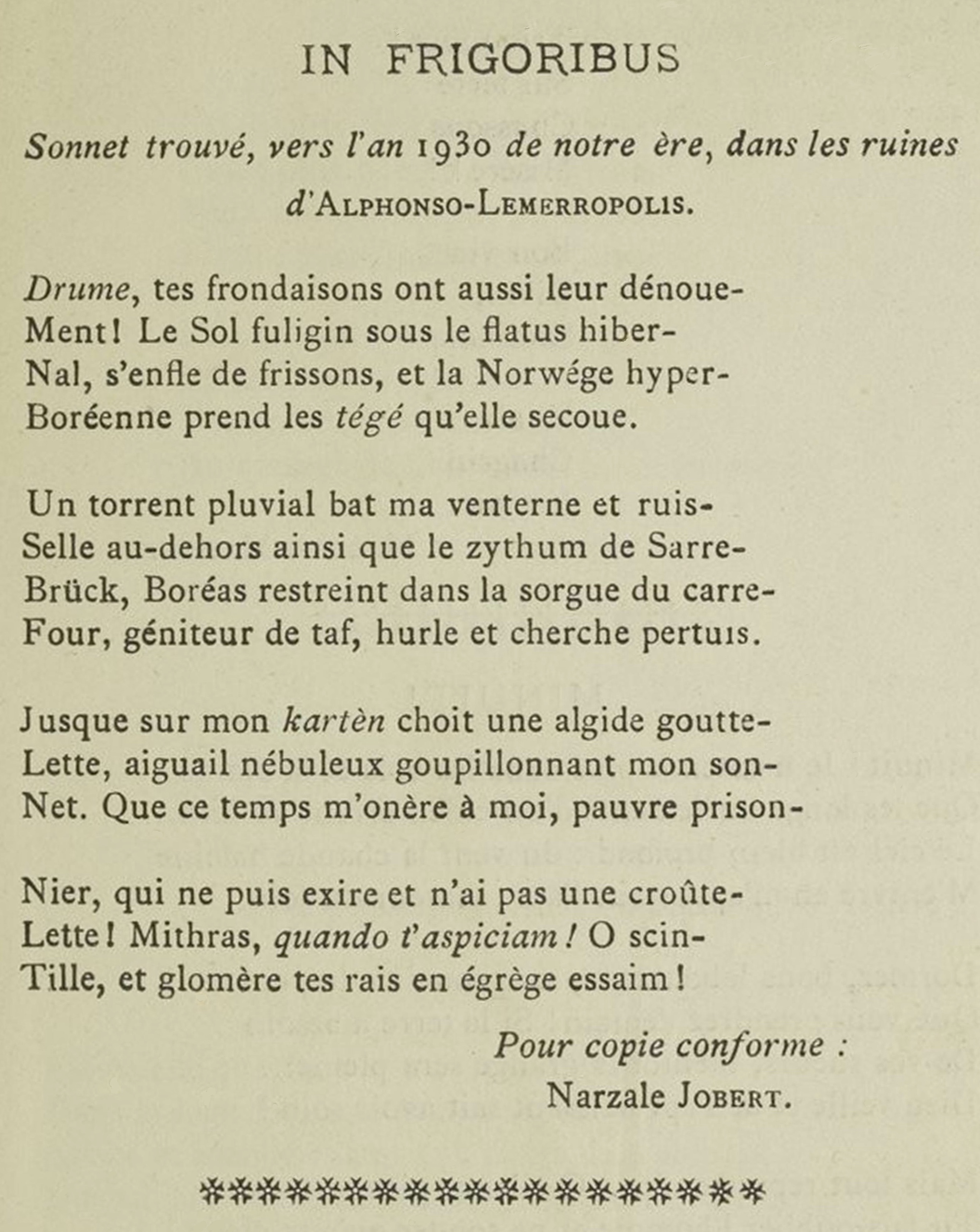 Et certes l’aventure exhale, en nombre de ses détours, l’odeur d’une époque assez proche, mal refroidie. Ce Jean-Marie est un gaillard qui a lu les vies des savants fameux dans un livre illustré et aussi le « Robinson suisse. » Autour de lui, les puissances diaboliques n’apparaissent pas dans un équipage princier, avec cornes, habits rouges ou pieds fourchus ; elle ne répandent point une odeur de soufre ; elles ont prudemment sacrifié à l’humeur d’un siècle où l’on commençait à canaliser les prodiges, tant à la manière des spirites qu’à celle de Charcot.