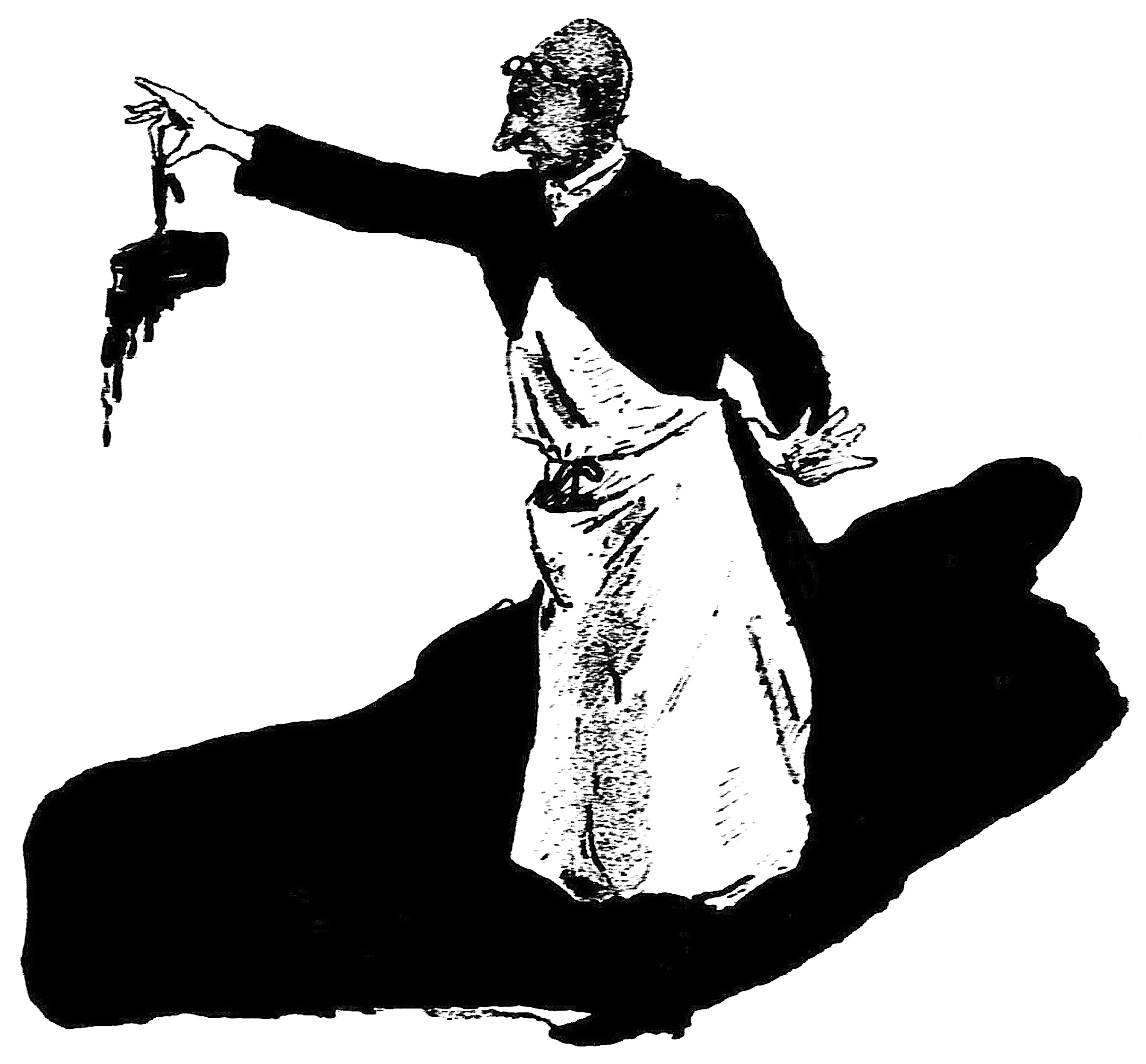 Les exécutions précédemment tentées sur des cobayes, lapins et autres martyrs désignés de la science académique, lui indiquaient nettement la marche à suivre. Aussi, une fois son projet arrêté, Honoré n’eut-il pas une minute de tâtonnements. Le cabinet d’expériences, bien garni de tous instruments, et la grande table de dissection en marbre noir surmontée d’une svelte guillotine de bois de cèdre n’attendaient qu’un sujet convenable pour démontrer l’excellence de l’installation. Donc, le jour même, vers dix heures du soir, le docteur se rendait au laboratoire et vaquait aux derniers préparatifs. Ce ne fut pas long ; d’un dernier coup d’œil circulairement attentif, il inventoria la disposition des accessoires ; puis il se dirigea vers la chambre nuptiale.
