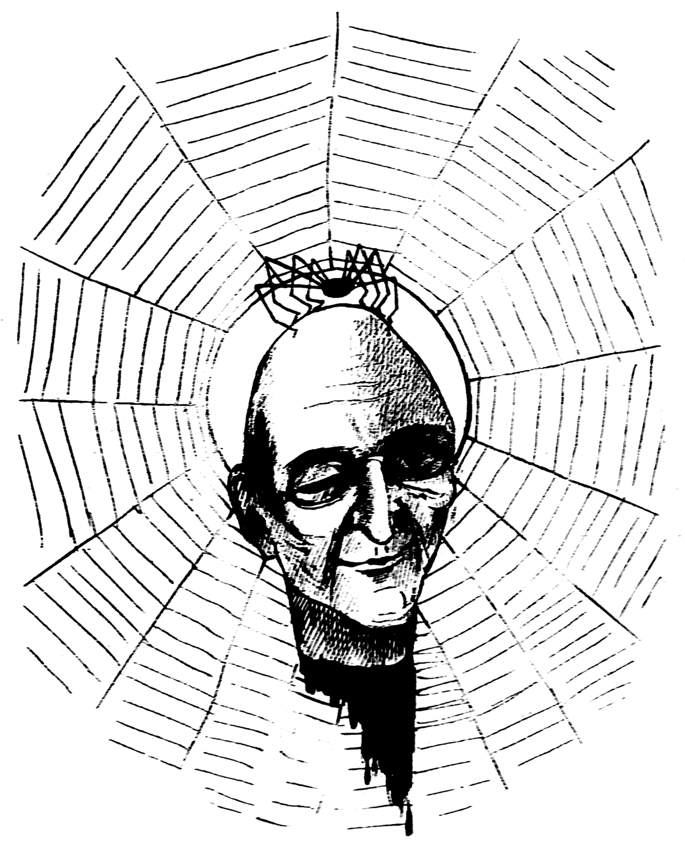 Des mois s’écoulaient. Pâle, les paupières bistrées, l’œil hagard, Scrupulion perdait l’appétit et le sommeil. Et, dans son crâne déséquilibré jour par jour, minute par minute, l’araignée de l’idée fixe tissait sa toile.