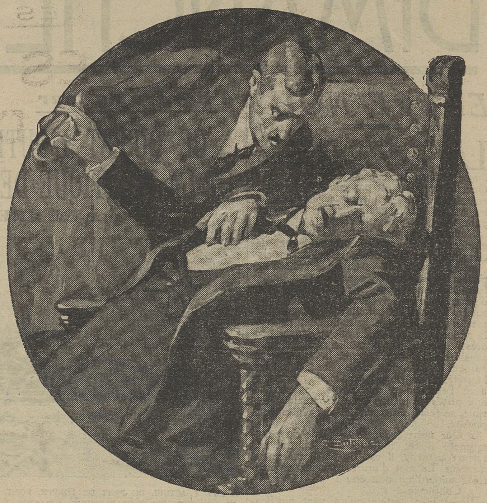 (Stephen Bond, traduit de l’anglais par René Lécuyer, « Nos Contes d’action, » in Dimanche-Illustré, douzième année, n° 585, dimanche 13 mai 1934 ; « Notre Conte quotidien, » in Dernière Heure, dixième année, n° 2639, lundi 30 mai 1955. L’illustration est extraite de Dimanche-Illustré)