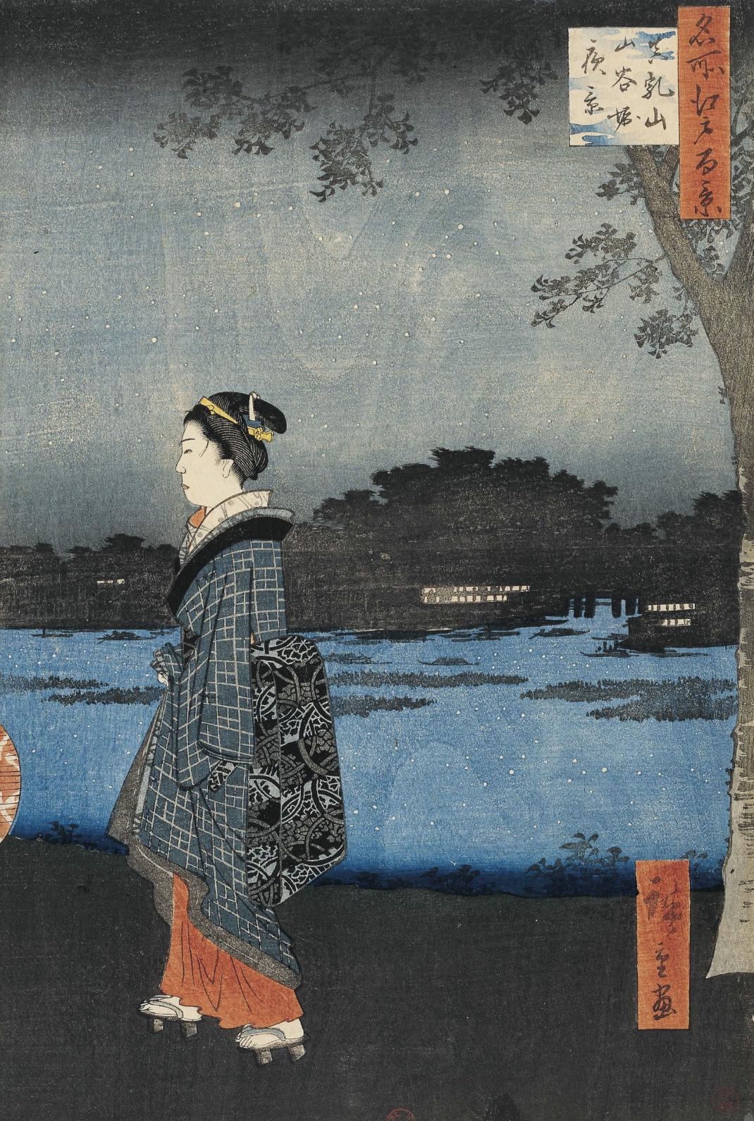 (Marguerite Moreno, « Les Mille et un matins, » in Le Matin, trente-neuvième année, n° 14154, mercredi 20 décembre 1922. « Vue nocturne du Matsuchiyama et du canal de Sanya, » estampe de Hiroshige Utagawa, 1856-1859)