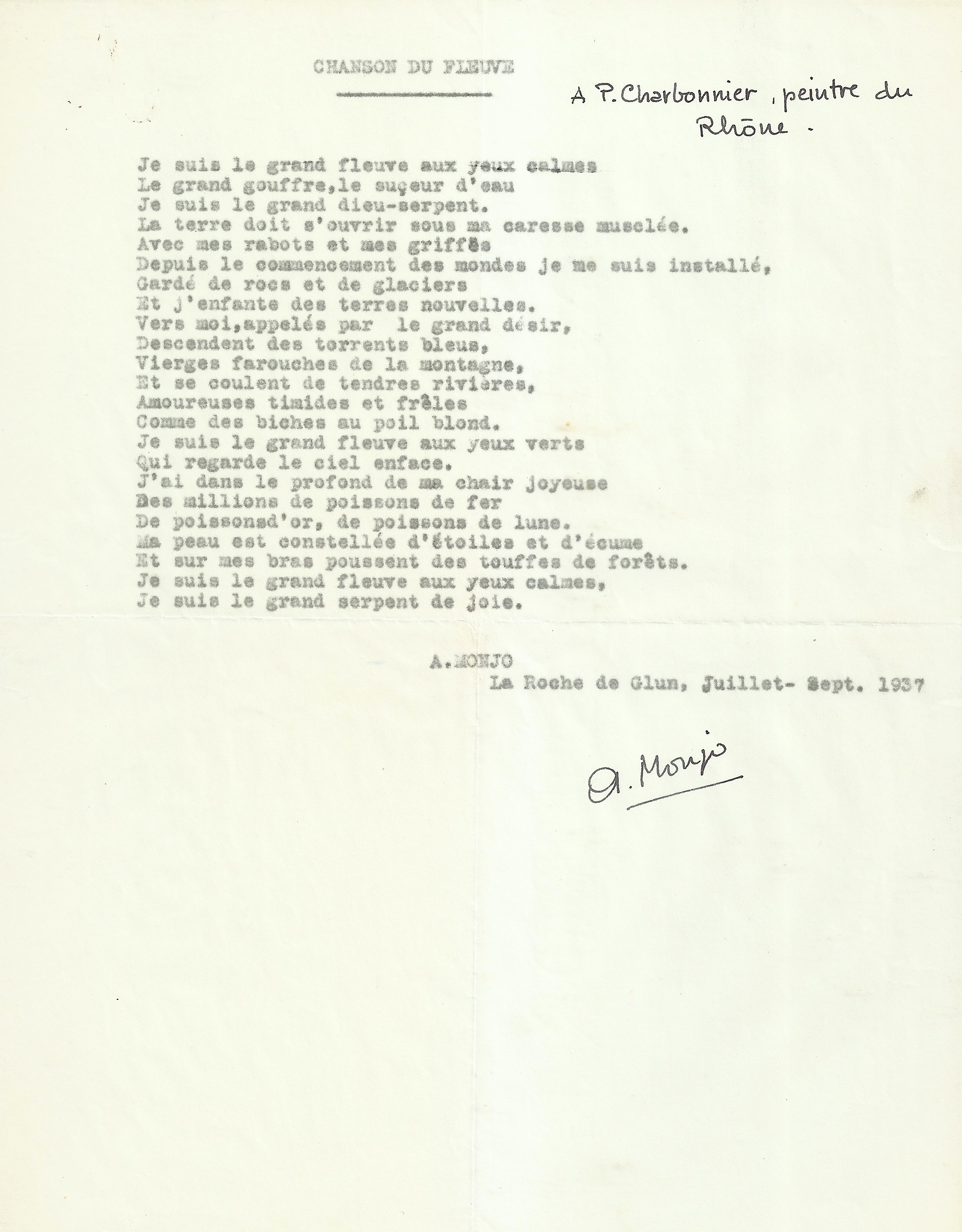 CHANSON DU FLEUVE, POÈME TAPUSCRIT INÉDIT