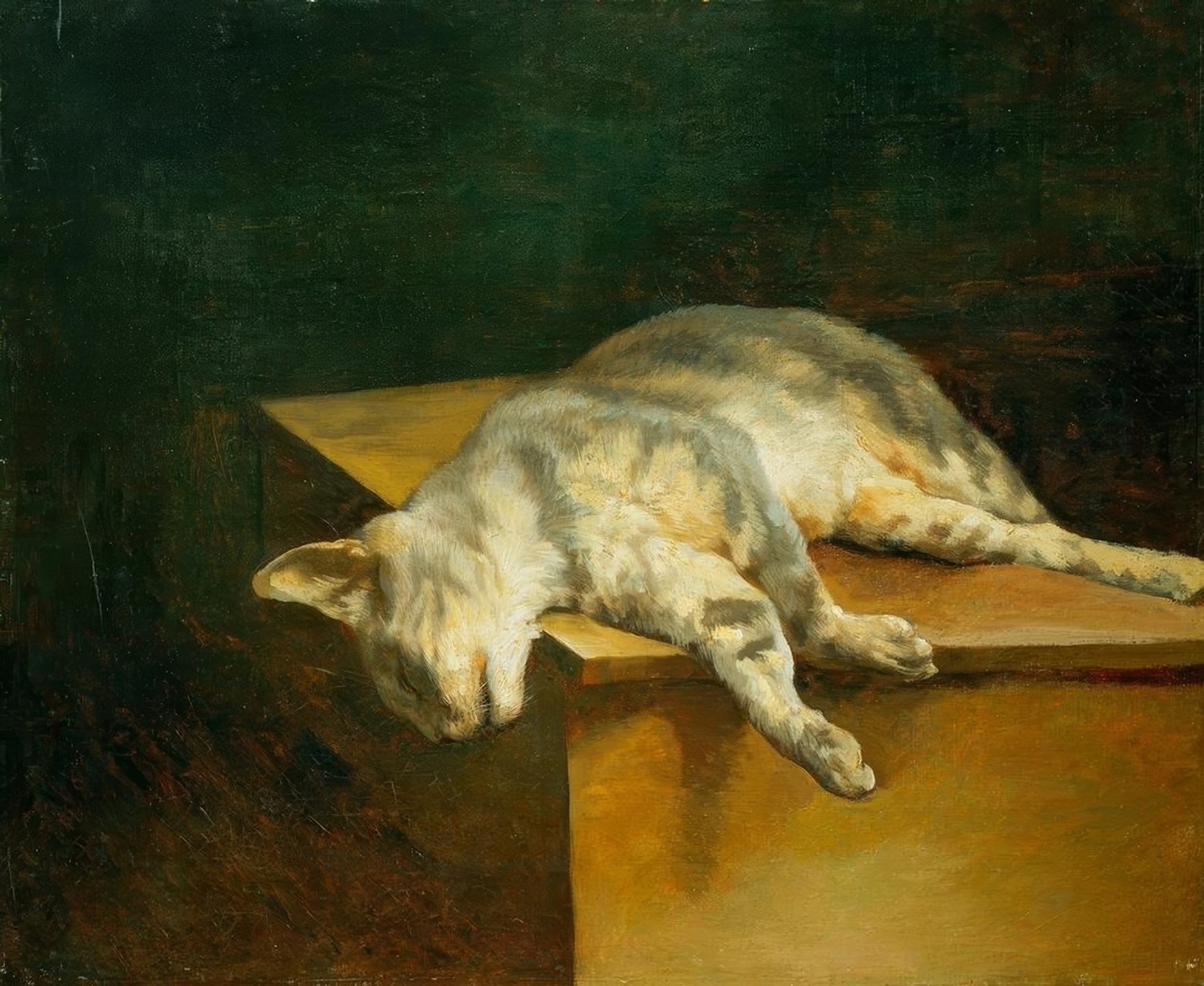 (Octave Mirbeau, in Gil Blas, neuvième année, n° 2814, mardi 2 août 1887 ; « Conte du lundi, » in La Démocratie du Cher, journal quotidien, douzième année, n° 141, lundi 23 mai 1892 ; in Le Journal quotidien, littéraire, artistique et politique, quatrième année, n° 1098, lundi 30 septembre 1895 ; in Le Supplément, grand journal littéraire illustré, quinzième année, n° 1360, mardi 3 mai 1898 ; avec la mention : « Conte inédit, » « Les Contes d’Excelsior, » in Excelsior, neuvième année, n° 2886, lundi 14 octobre 1918 ; « Contes et récits, » in L’Humanité, journal socialiste, n° 5748, samedi 17 janvier 1920 ; « Les Contes de la justice, » in La Justice, journal républicain du soir, quarantième année, dimanche 15 et lundi 16 février 1920. Cette nouvelle a été reprise en volume dans le recueil La Vache tachetée, œuvres inédites, Paris : Ernest Flammarion, 1918. Théodore Géricault, « Le Chat mort, » huile sur toile, c. 1820)