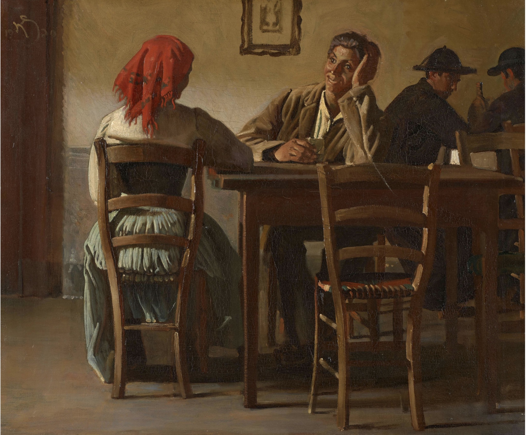 (Gabriel de Lautrec, in La Vogue, revue mensuelle, nouvelle série, tome III, n° 9, septembre 1899 ; in Le Supplément, grand journal littéraire illustré, vingt-sixième année, n° 3145, jeudi 23 septembre 1909. Knud Sinding, « Couple attablé dans une auberge italienne, » huile sur toile, 1930)