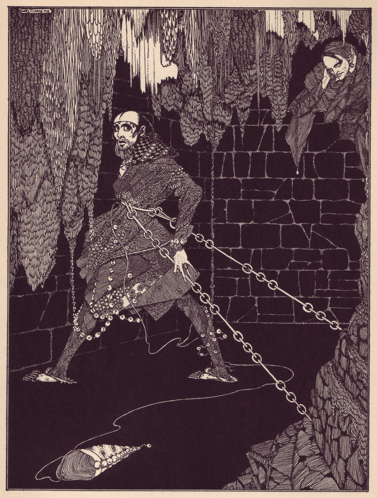 D’une secousse, je rompis l’attache supérieure de la cordelière. La clochette éloignée eut un sursaut retentissant et la corde rouge tomba dans mes mains.