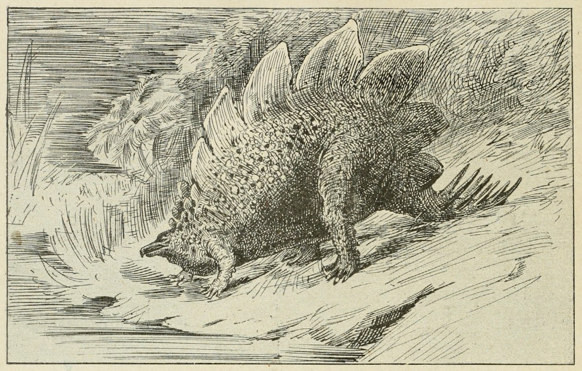 Courageusement, le professeur tira. Ce devait être un geste inutile, la balle ayant les plus grandes chances de s’aplatir sur l’épaisse cuirasse du monstre. Or, il vit voler en éclats l’une des crêtes. Grognant de fureur, sinon d’effroi, le stégosaure plongeait dans l’étang et devenait invisible.