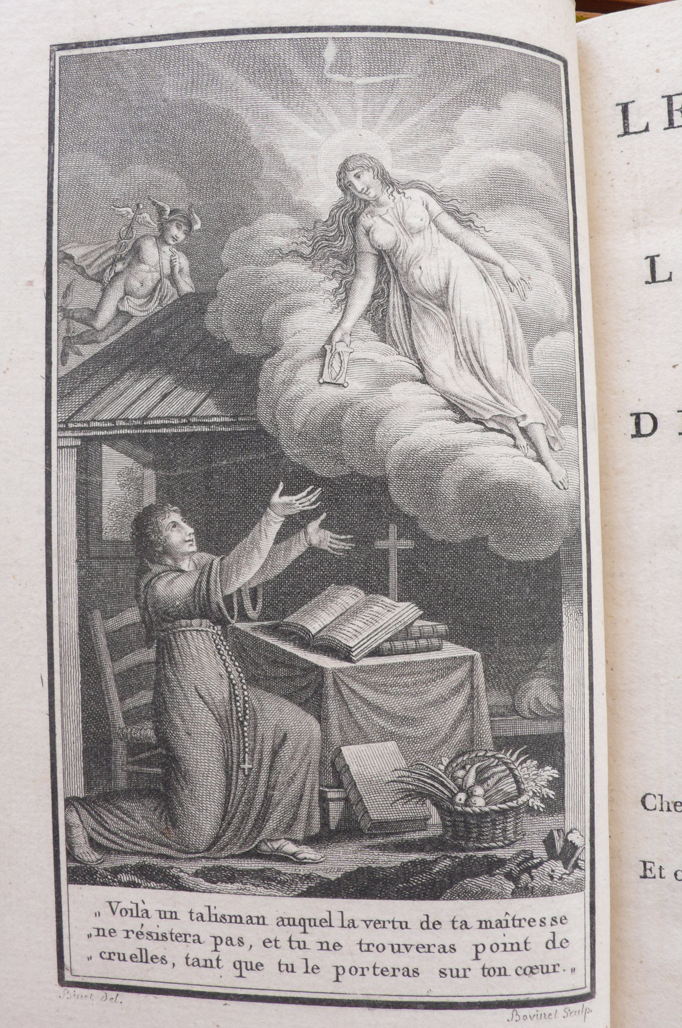 « Voilà un talisman auquel la vertu de ta maîtresse ne résistera pas, et tu ne trouveras point de cruelles, tant que tu le porteras sur ton cœur. »