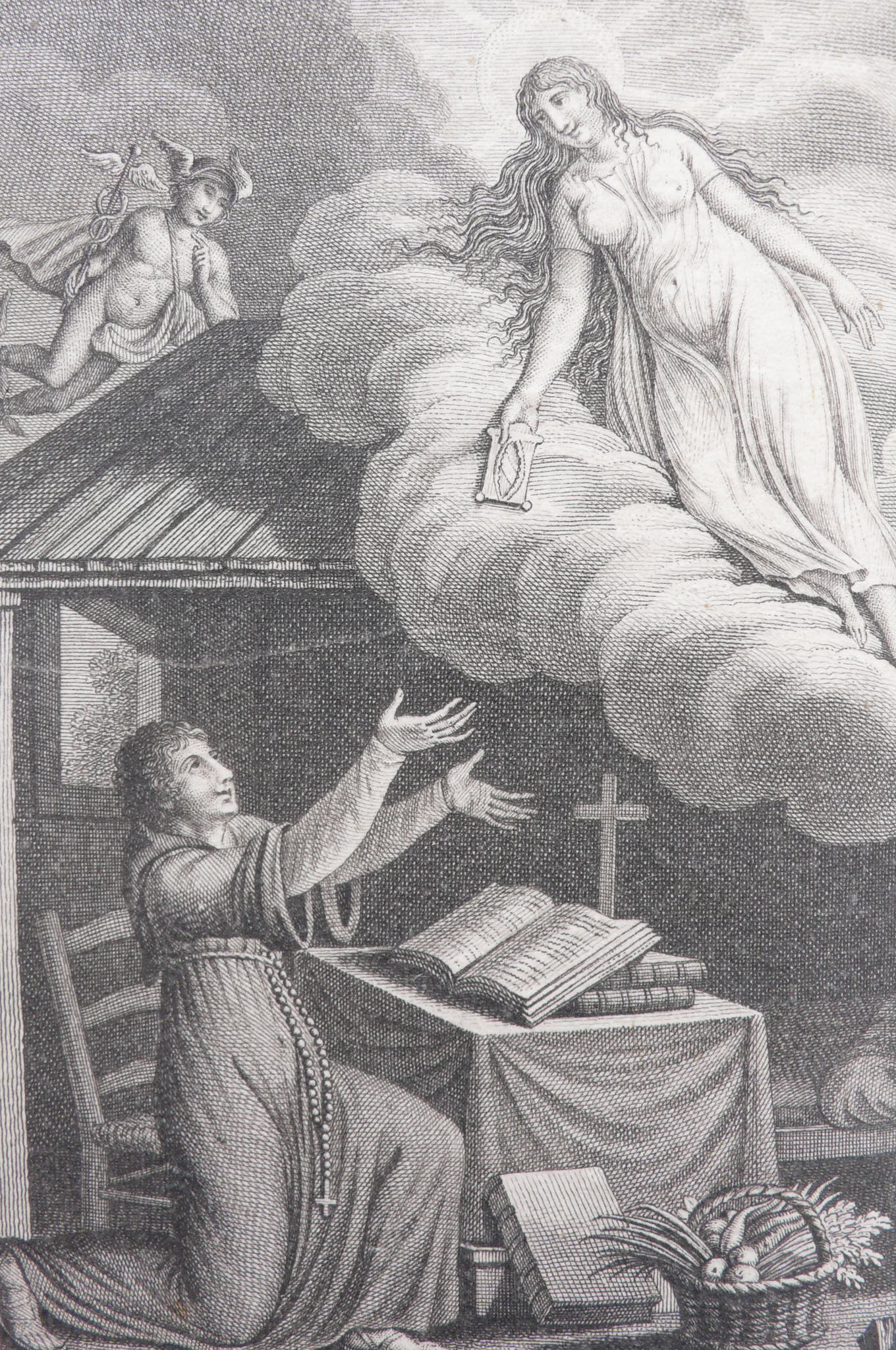 Les vœux étaient prononcés. On se préparait à passer à Aurélie l’habit de religieuse pendant que les sœurs des deux couvents chantaient alternativement les strophes d’un hymne. Déjà l’on avait retiré les roses et les myrtes qui ornaient ses cheveux, et l’on tenait les ciseaux avec lesquels on devait couper ses boucles ondoyantes, quand tout à coup un tumulte s’éleva dans l’église. Les assistants poussés avec force se séparaient et tombaient par terre. Avec des gestes furieux et des regards terribles, un homme à demi nu, n’ayant pour tout vêtement qu’une robe de capucin en lambeaux, traversait la foule en la repoussant de part et d’autre avec les poings fermés et une force gigantesque. Je reconnus sur-le-champ mon double ; mais, au moment où, craignant quelque événement affreux, je voulus m’élancer de ma place et me jeter au-devant de lui, je le vis sauter par-dessus la grille qui entourait l’autel. Les religieuses s’enfuyaient en criant, saisies de frayeur. L’abbesse tenait Aurélie serrée dans ses bras.