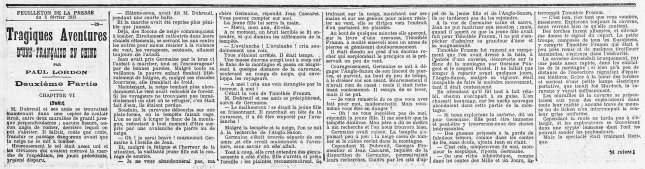 Il venait de terminer le récit fidèle de son aventure incroyable, s’inquiétant de plus en plus du silence obstiné du P. Palud, quand celui-ci, d’une voix brève, froide, tranchante comme l’éclair d’un couteau, lui cria avec irritation :