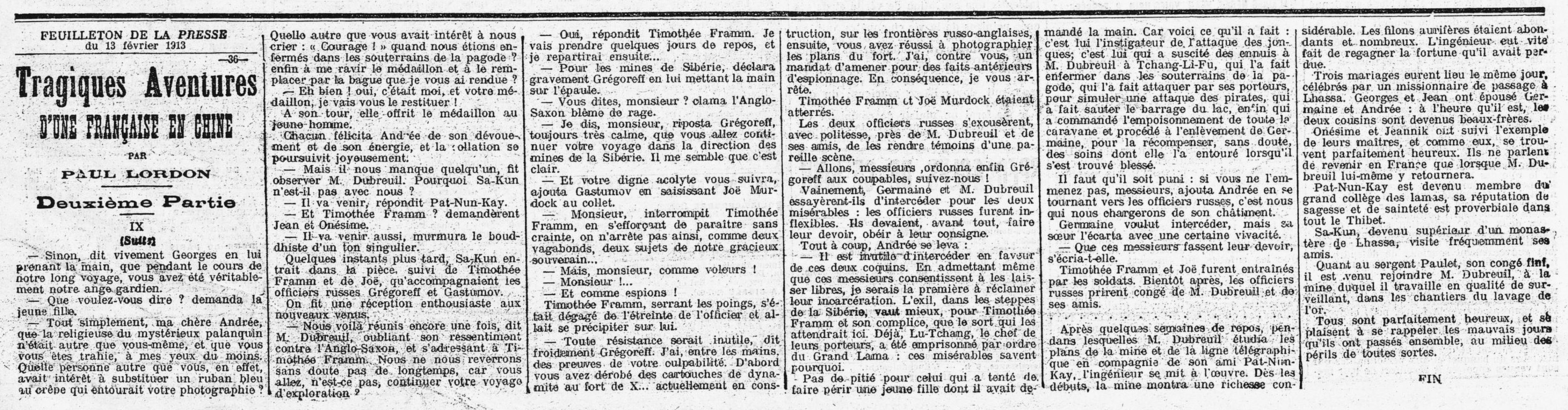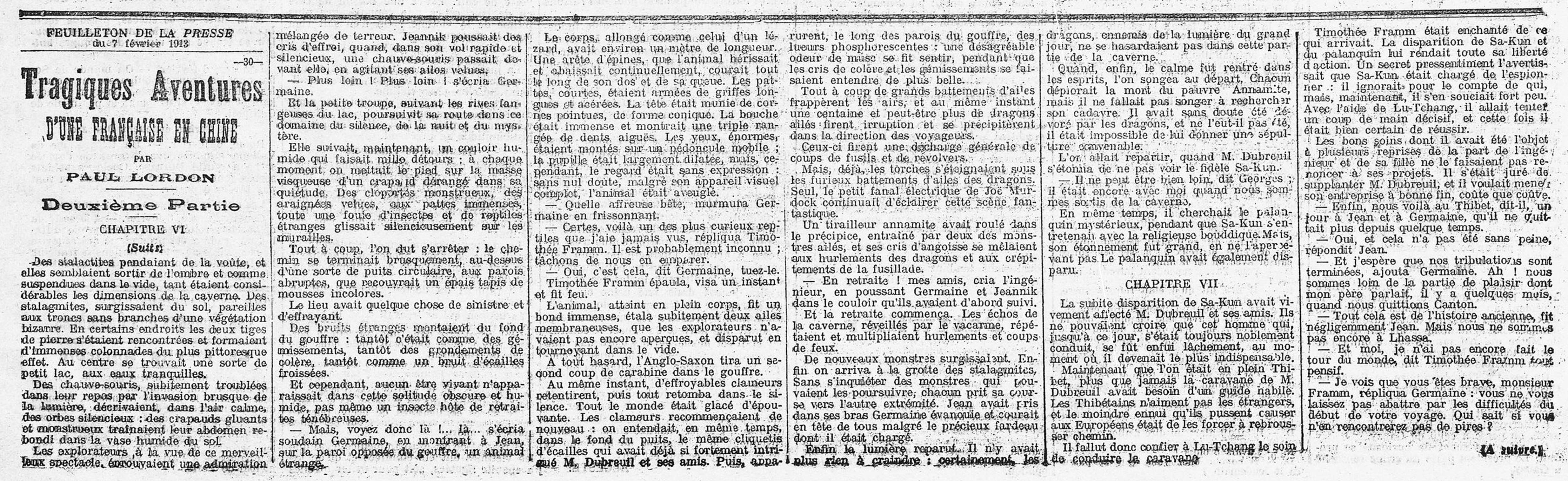 C’était aussi l’appel de l’Inconnu, se répercutant au cœur du missionnaire et du savant. Allait-il se trouver en présence d’une peuplade ignorée ? Que serait cette première rencontre ? Et des visions de martyres saignèrent à ses yeux.