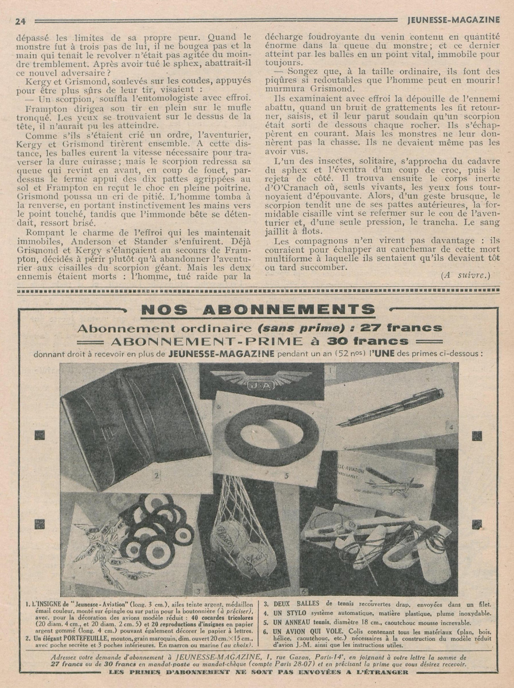 (Henri Darblin, illustré par René Pellos, in Jeunesse-Magazine, aventures, aviation, première année, n° 23, dimanche 6 juin 1937)