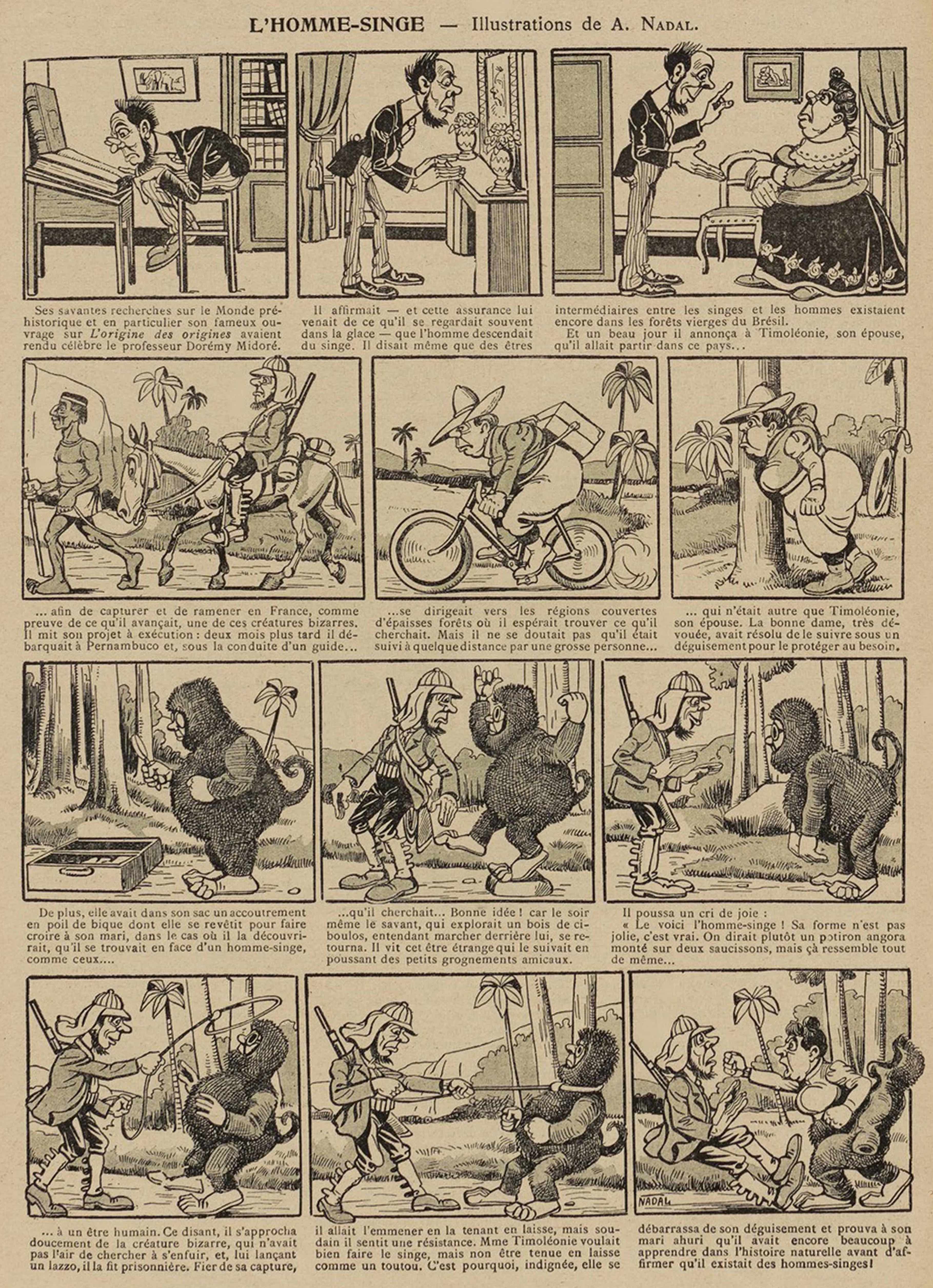 (Alphonse Allais, « La Vie drôle, » in Le Journal quotidien, littéraire, artistique et politique, deuxième année, n° 377, lundi 9 octobre 1893 ; in La Petite Gironde, journal républicain quotidien, vingt-septième année, n° 9028, mercredi 10 mars 1897 ; in La Charente, organe républicain quotidien, vingt-septième année, n° 11895, jeudi 14 avril 1898 ; in Le Journal pour tous, onzième année, n° 5, jeudi 14 février 1901 ; « Variétés, » in Le Tourangeau, orage des intérêts sociaux et économiques de la région, douzième année, n° 839, jeudi 2 mai 1901 ; plagié sous la signature de « Matricaria, » in Hazweiss, Organ des P. V. E. L., treizième année, n° 162, septembre 1906 ; in Le Progrès, journal républicain quotidien, quarante-huitième année, n° 17296, samedi 7 septembre 1907 ; repris en volume dans le recueil Rose et Vert-Pomme (Œuvres anthumes), Paris : Paul Ollendorff, 1894. « Le Tigre des mers, » gravure extraite du Journal des Voyages et des Aventures de Terre et de Mer, n° 72, dimanche 24 novembre 1878)
