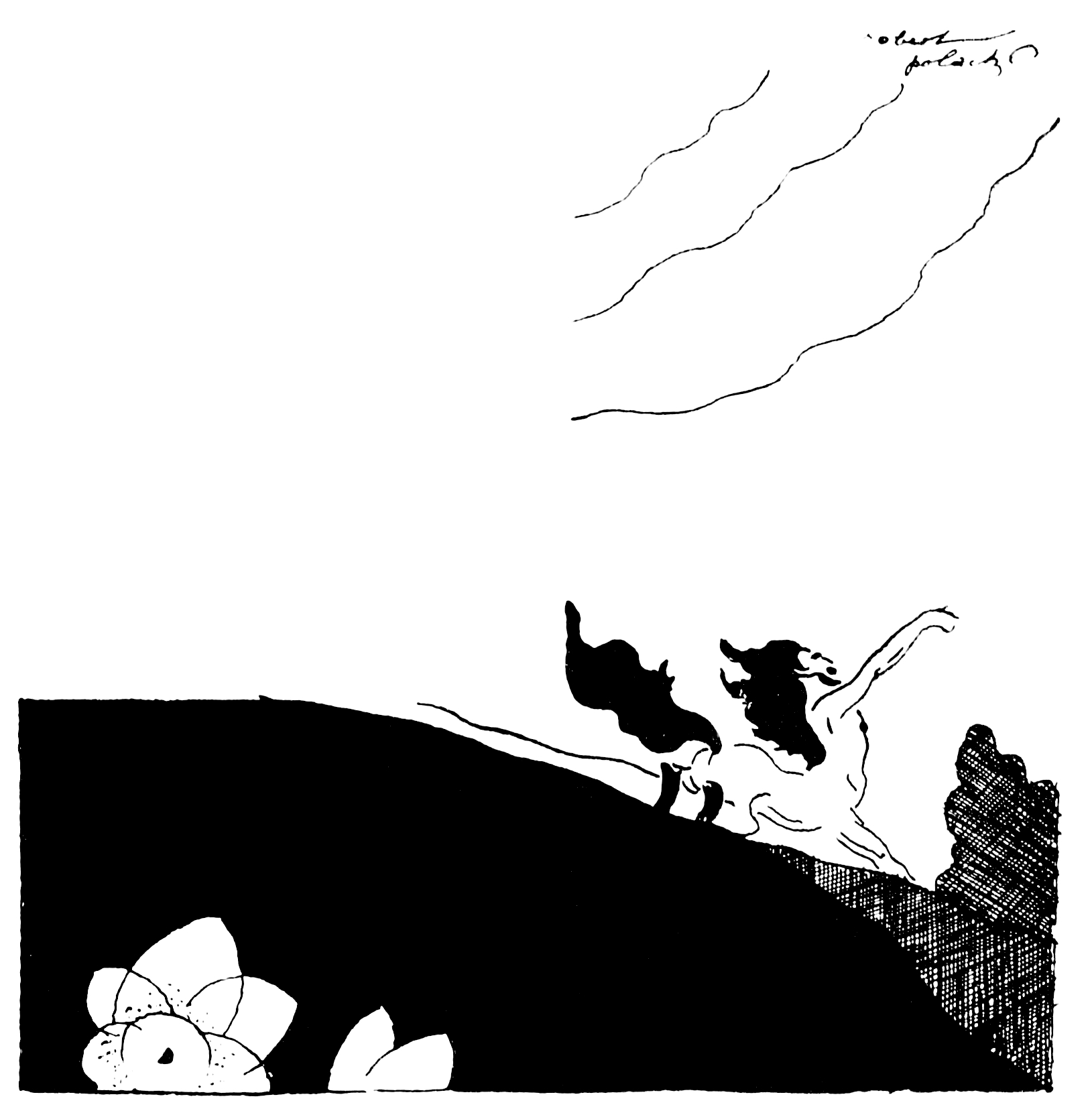 Les jambes de la bête fabuleuse avaient la supériorité du nombre. Elles se rapprochaient d’un galop léger et je sentis un souffle sur mes reins. Un frisson d’horreur me glaça et je tombai sur l’herbe verte.