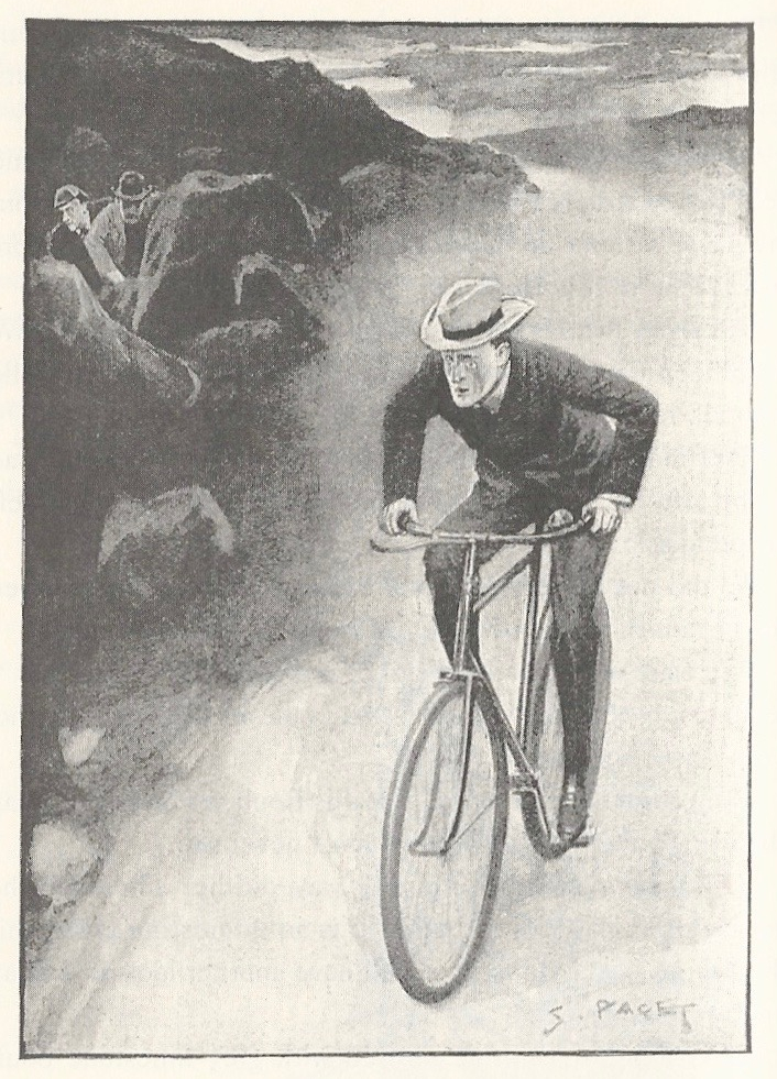 La ferme-cottage était au bout d’un petit chemin de terre battue, entouré de roses sauvages. Je poussai la barrière de bois ; j’entrai dans un jardin désordonné et léger. Il y avait la maison au fond, grise et rose, et à gauche un grand pré qui descendait doucement vers une rivière. Un homme vêtu de toile blanche menait seul dans ce pré un jeu singulier. Il brandissait un objet, dont je vis à la fin que c’était un appareil photographique, se promenait nonchalamment, puis, brusquement, se retournait, faisait quelques pas en courant, reculait, se jetait à plat ventre, se relevait. À mesure que je m’approchais, je reconnaissais mieux l’image célèbre dans le monde entier de l’auteur de Sherlock Holmes. À la fin, je fus près de lui et il ne semblait pas s’apercevoir d’une présence humaine ; il continuait ses gambades.