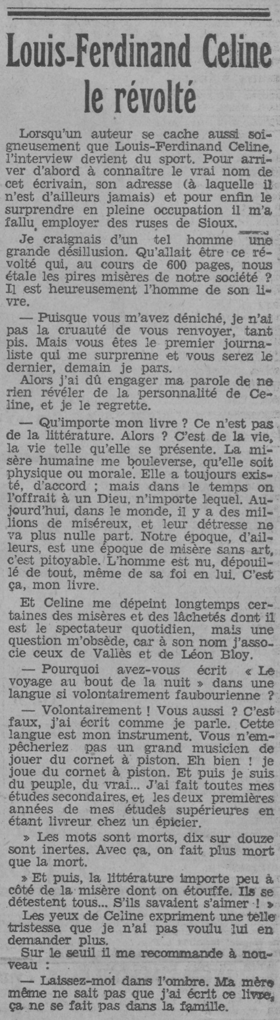 « Dînez avec moi, reprit-il presque immédiatement, Vanier m’a donné des argents et la vie est belle ! »