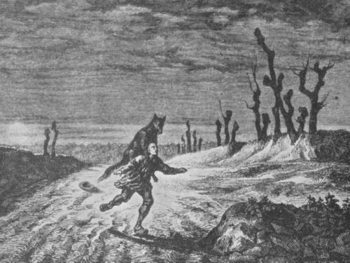 Une nuit, mettant à profit les leçons de Michel Verdung, j’attaquai à belles dents, aussitôt que je me sentis transformé en bête féroce, un jeune garçon âgé de six à sept ans, que je me proposais de tuer ; ses cris, ses vociférations m’empêchèrent d’en venir à mes fins ; je fis aussitôt retraite ; je gagnai en toute hâte l’endroit où j’avais caché mes habits et je parvins, en me frottant le corps avec de l’herbe, à recouvrer la forme humaine. Une autre nuit que j’étais transformé en loup, ainsi que Michel, et que nous parcourions ensemble la campagne, nous sommes venus à bout de tuer une femme qui cueillait des légumes. Nous nous disposions à traiter avec la même cruauté un individu qui parvint à prendre la fuite et qui ainsi se trouva soustrait à notre fureur.